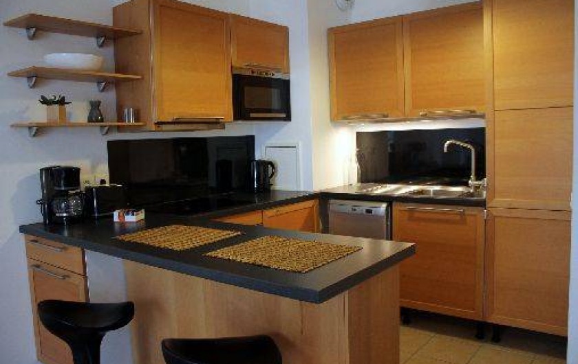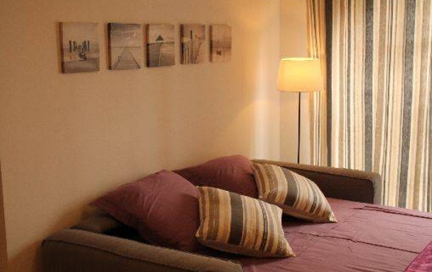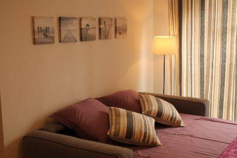 Ce paisible 2 pièces offre un séjour avec un canapé convertible (2 personnes), une cuisine ouverte entièrement équipée et aménagée, une chambres avec un lit double (2 personnes), une salle de bain avec toilettes.