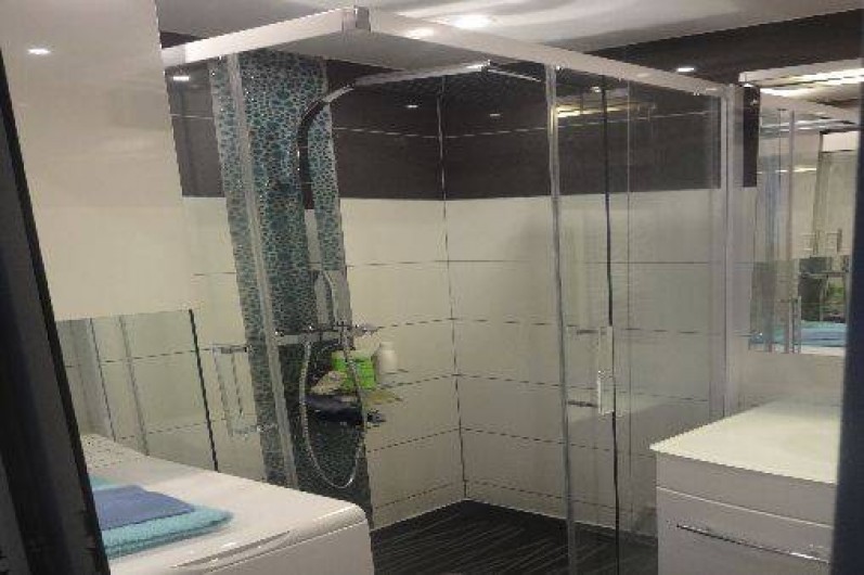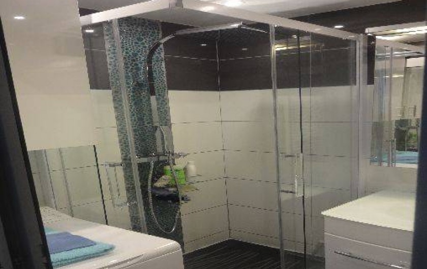La salle de bains a une douche, 1sèche serviette, 1 lavabo avec meuble de rangement, un lave linge, les wc sont séparés, 1 chambre indépendante avec 1 lit en 140, un convertible en 140 très confortable dans la pièce principale, de nombreux rangements.