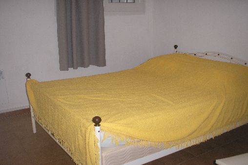 F2 composé d'une chambre avec 1 lit en 140 cm et 2 lits superposés, salle d'eau wc, une salle avec coin cuisine équipée, TV, terrasse exposée plein avec salon de jardin ombragée par des mûriers platanes.