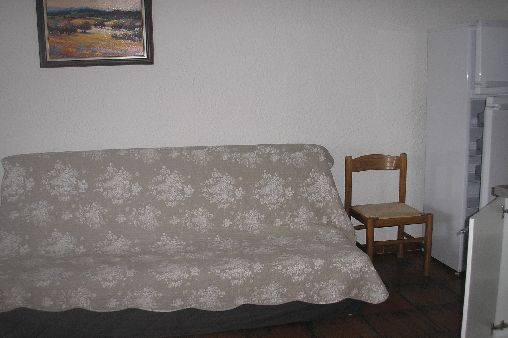 Studio composé d'une grande salle avec kitchenette, 1 lit en 140 cm et 2 lits superposés, avec salle d'eau wc séparé, terrasse couverte exposée plein sud Tv