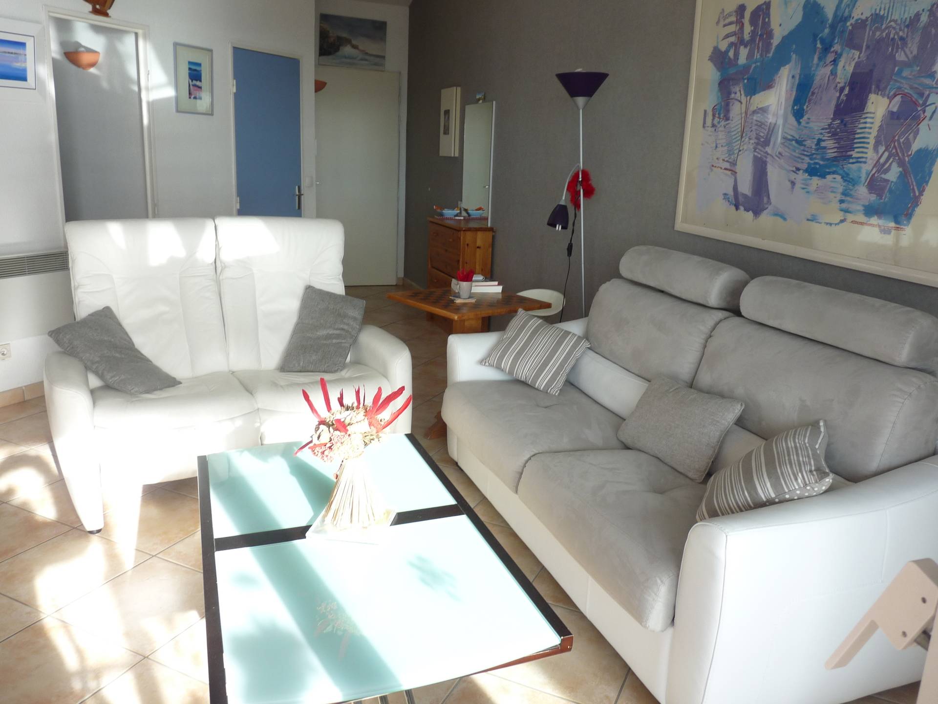 Bel appartement (ref CM 133) bien décoré superbe vue mer à six Fours les Plages avec une pièce principale et canapé convertible - une cuisine américaine équipée avec lave linge lave vaisselle, réfrigérateur, TV écran plat - une terrasse avec baie vitrée - 2eme étage avec ascenseur - place de parking privatif dans résidence surveillée -