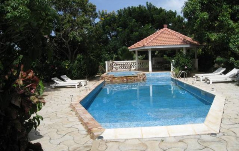 Réserve d'eau, coffre fort. Les cuisines sont entièrement équipées, plaque de cuisson, blender, micro onde, grille pain, sèche cheveux etc... La piscine avec 2 bassins, un petit de 2.50 x 2.50 de 30 cm de profondeur avec débordement dans un grand bassin de 5 x 10 m de 1.50 m de profondeur. Un jeux de boule.