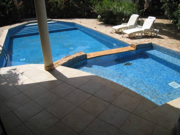 A la Somone sur la petite côte au calme dans un village pêcheur à 8 km de Saly, dans un parc de 3000 m² magnifiquement arboré, loue 2 appartements en villa un de 48 m² (pour 4 personnes) avec une chambre un lit double et 2 banquettes lits dans le séjour et 1 de 70 m² pour 6 personnes avec 2 chambres avec lits double et 2 banquettes dans le séjour. Les 2 appartements sont ventilés et climatisés avec moustiquaire, cuisine américaine, 1 salle d'eau wc pour l'appartement de 48 m² et 2 salles d'eau wc pour celui de 70 m² les 2 appartements ont une terrasse individuelle ventilée.