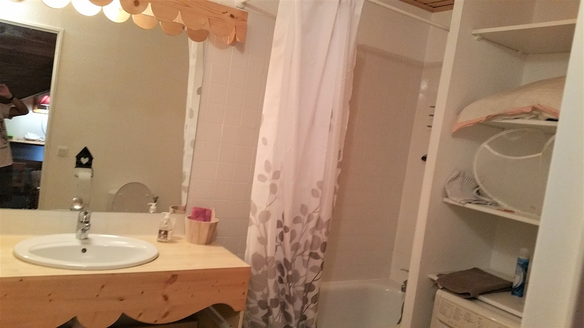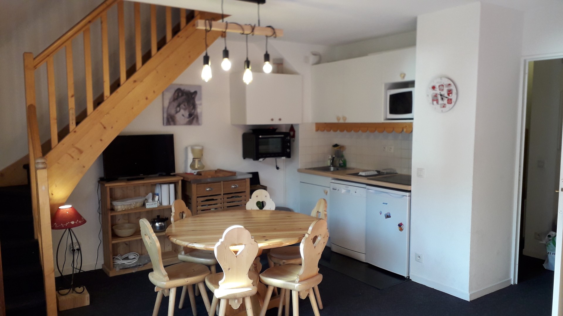 montagne des marmottes avec 2 lits superposés , séparés du séjour par une porte .Placards penderie . Salle de douche , wc séparé . Coin cuisine très équipée avec plaque induction , four , lave vaisselle , frigo , divers appareils culinaires dont raclette . Salon avec canapé lit gigogne confortable , tv , grand balcon pleine vue montagne .