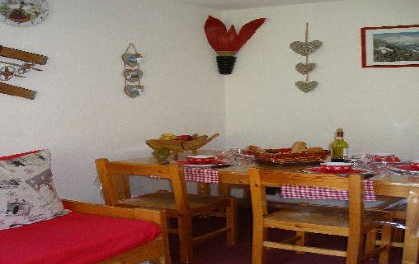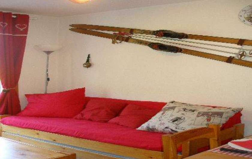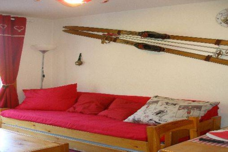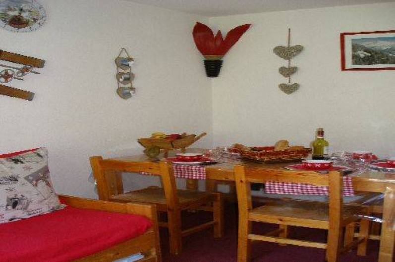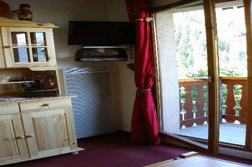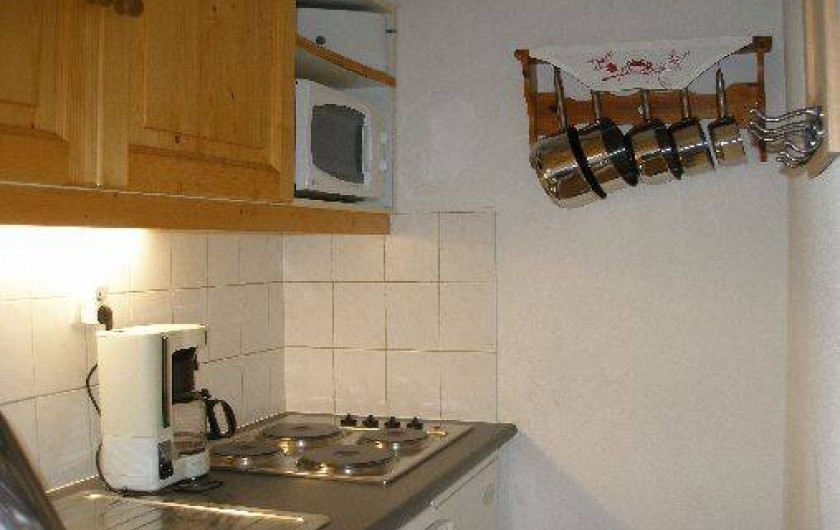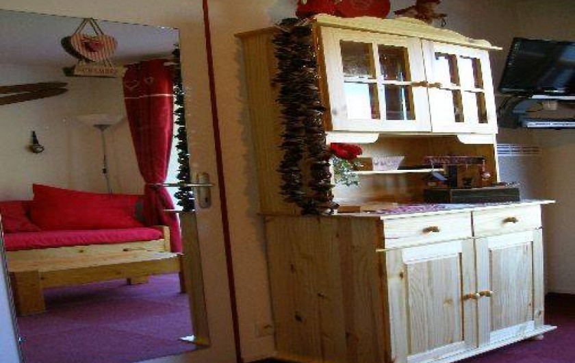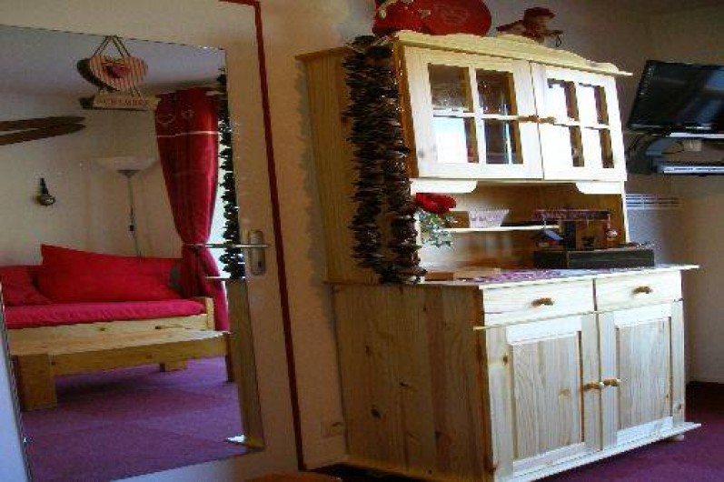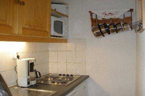 l'entrée, dans pièce principale un canapé gigogne 2 couchages, kitchenette toute équipée : 4 plaques électriques, frigo, lave-vaisselle, four micro-onde,cafetière, bouilloire, grille-pain, service à fondue et service à raclette, cocotte-minute, télévision 60cm TNT, lecteur DVD. Jeux de société, local à ski à votre disposition juste à côté de la résidence