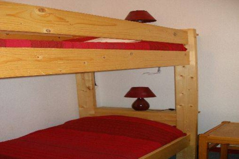 Classement 2 étoiles de tourisme, 1 chambre, lit double (140), salle de bain et WC séparé, 1 coin montagne avec 2 couchages (lits superposés)séparé par une porte de la pièce principale, placard dans