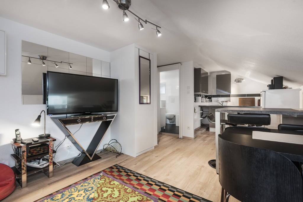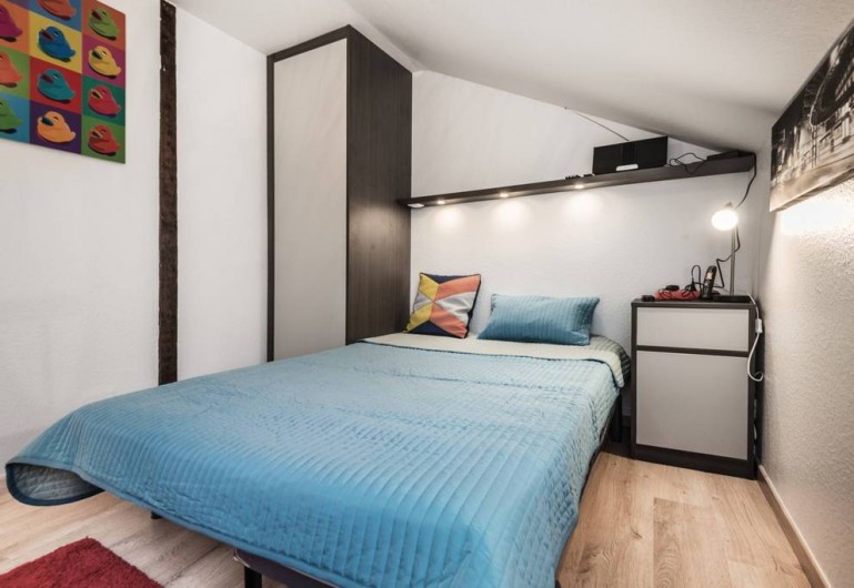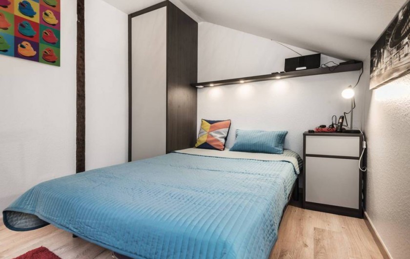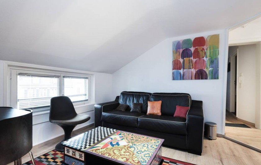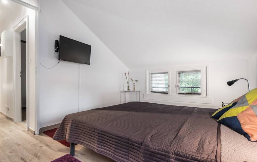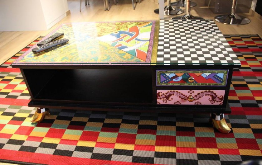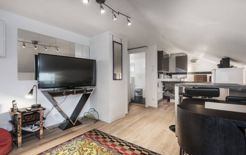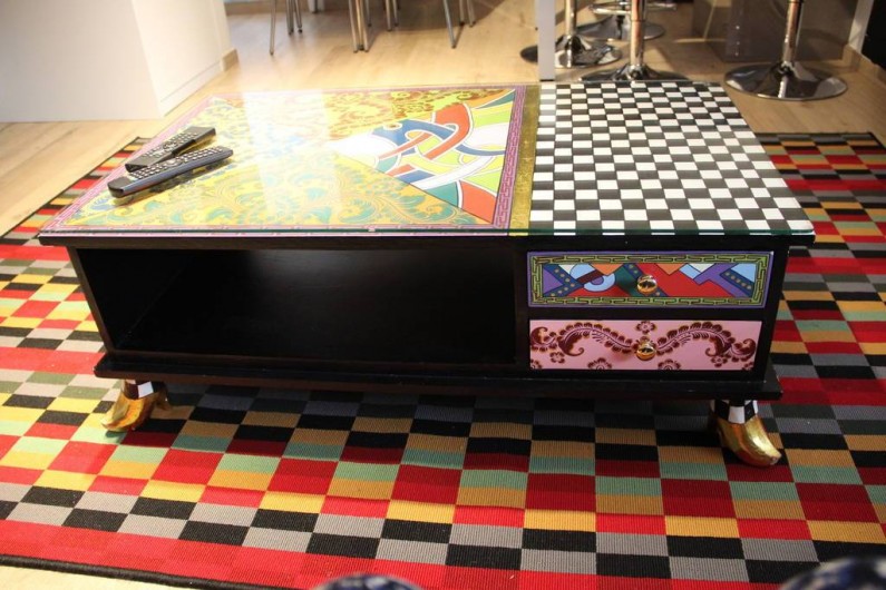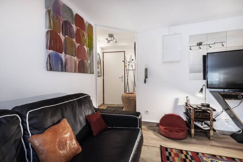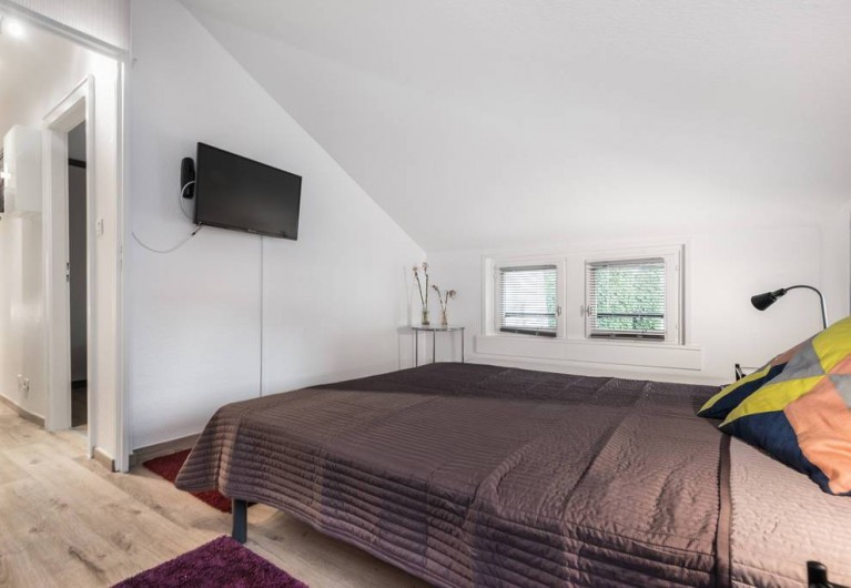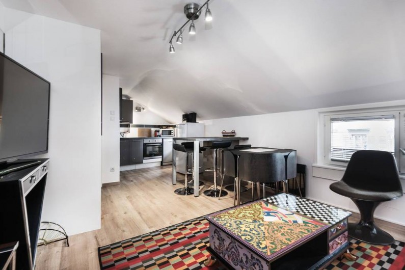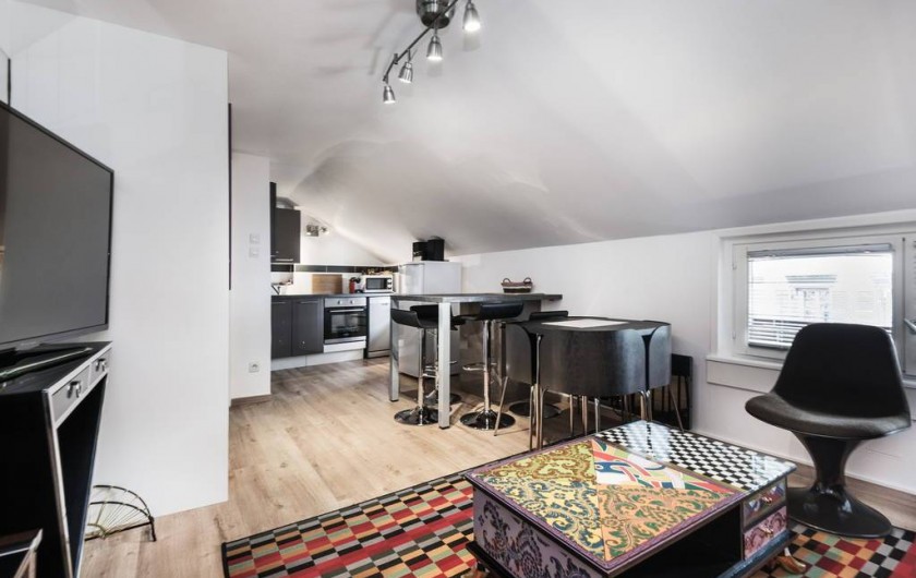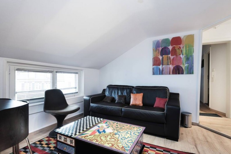 - 1 sejour avec une banquette lit ( couchage 2 personnes tres confortable) , une table , une Tv