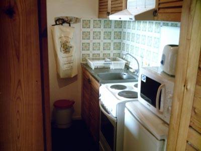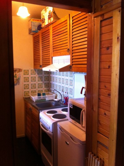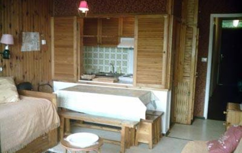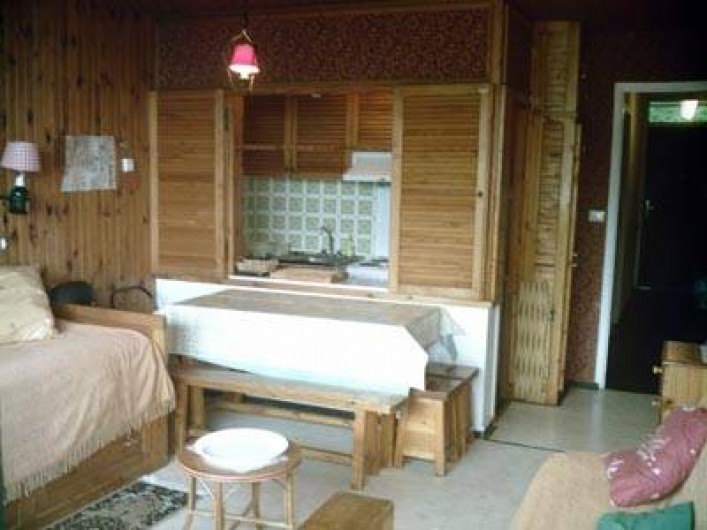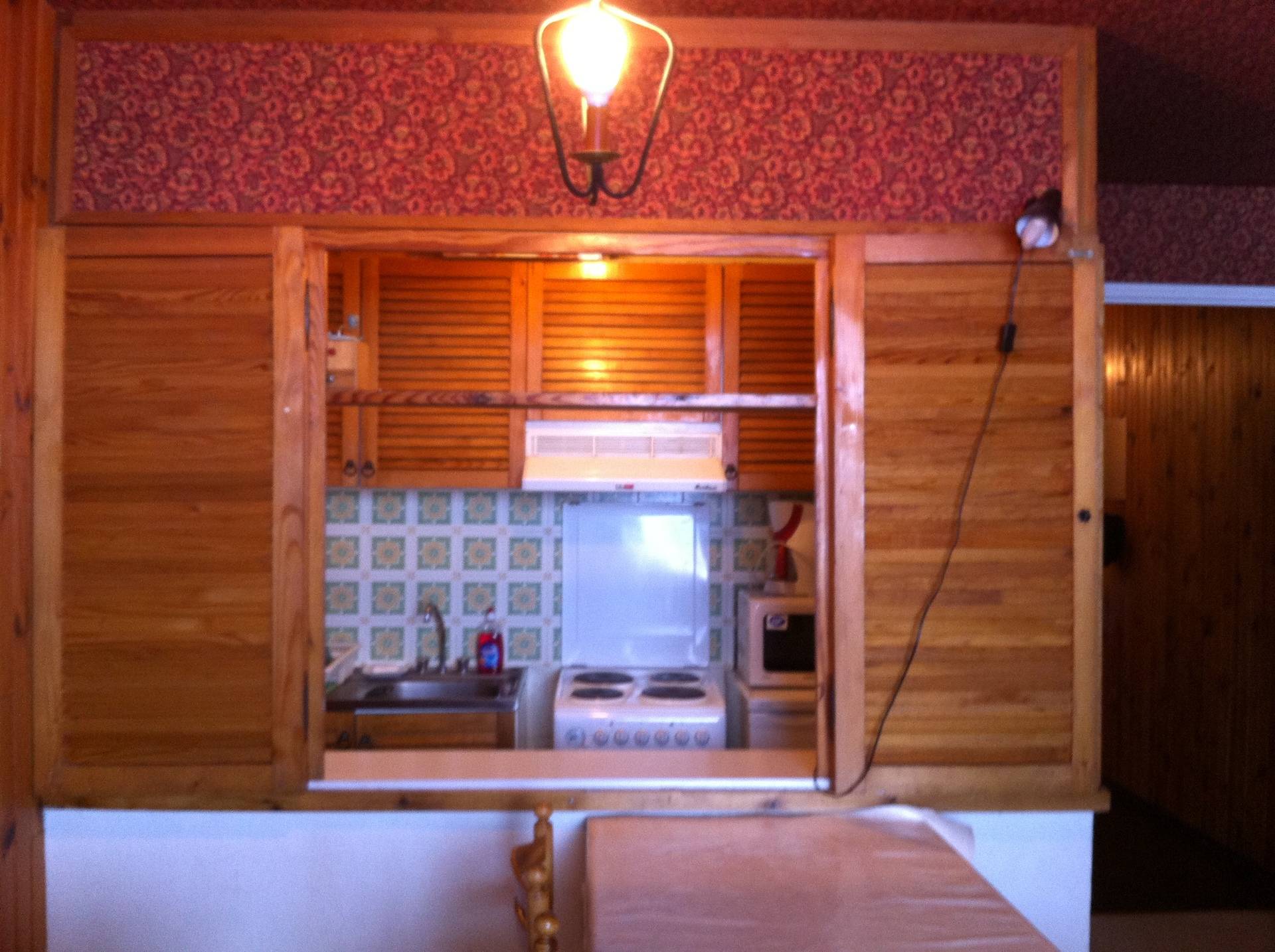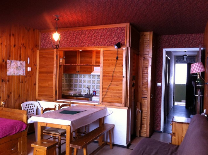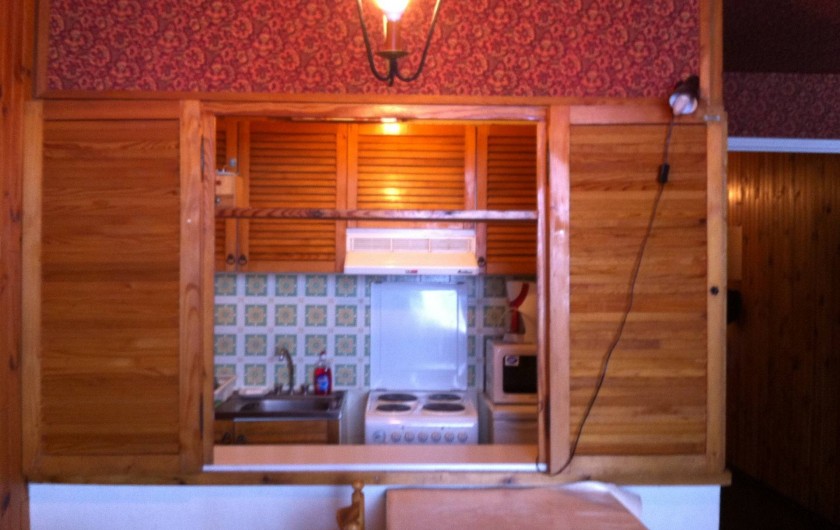 - cuisine donnant dans la salle de séjour par ouverture de volets ajourés.