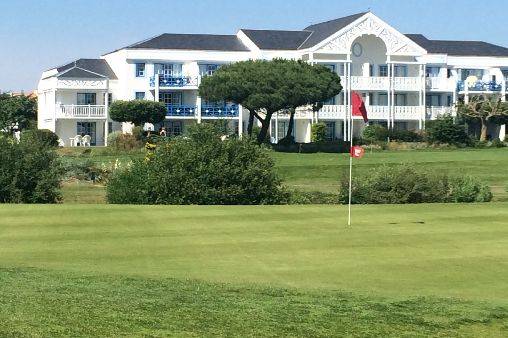 superbe appartement rénové dans le site pierres et vacances de port bourgenay. Vue et face au golf. Face au depart du trou numéro 1 et face à l'arrivée du trou numéro 2.