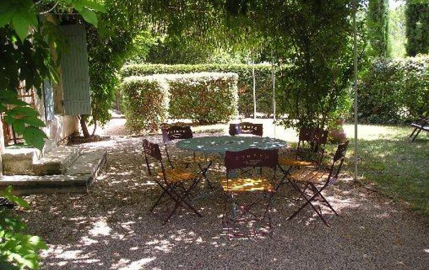 La location dispose d'une grande terrasse ombragée et d'un jardin privatif jouxtant un grand parc permettant quelques activités sportives (table de ping pong, portique) Un parking est réservé à l'appartement.