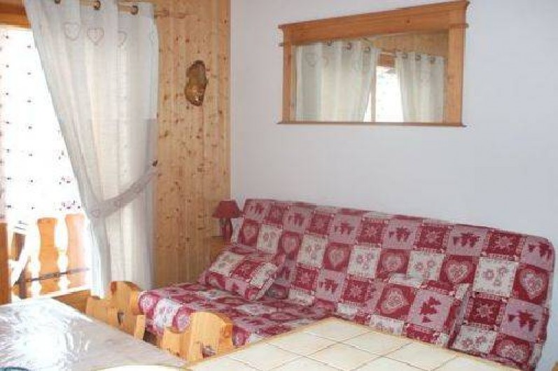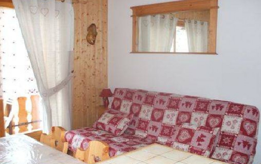 - Séjour : clic-clac - table rectangulaire + 4 chaises et 2 tabourets - buffet bas - miroir- téléviseur couleur écran plat - lecteur DVD