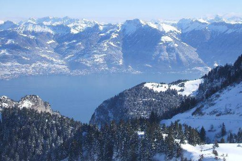 Thollon les Mémises, station panoramique avec vue sur le lac Léman qui sétend en contrebas, ainsi que sur les Alpes suisses Station familiale Altitude 1000 à 2000 m