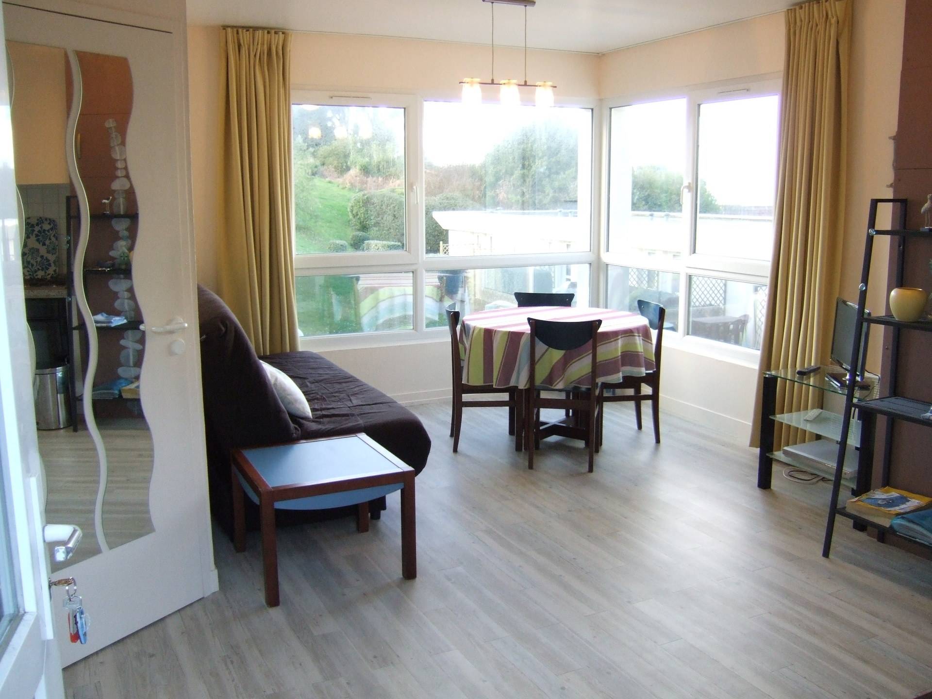 Location d'un bel appartement, sur la côte de granit rose, entre Port-Blanc et Perros-Guirec, pour 4 personnes.Les photos avec vues mer sont prises depuis la salle à manger-salon. L'appartement est lumineux à la décoration soignée et à l'ambiance Chaleureuse. Il se situe dans une résidence de vacance calme et familiale, à 50 m de la magnifique plage de Trestel ( classée pavillon Bleu Europe).Vue panoramique sur la plage et le large.