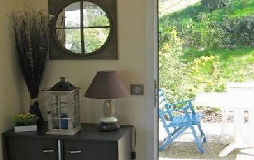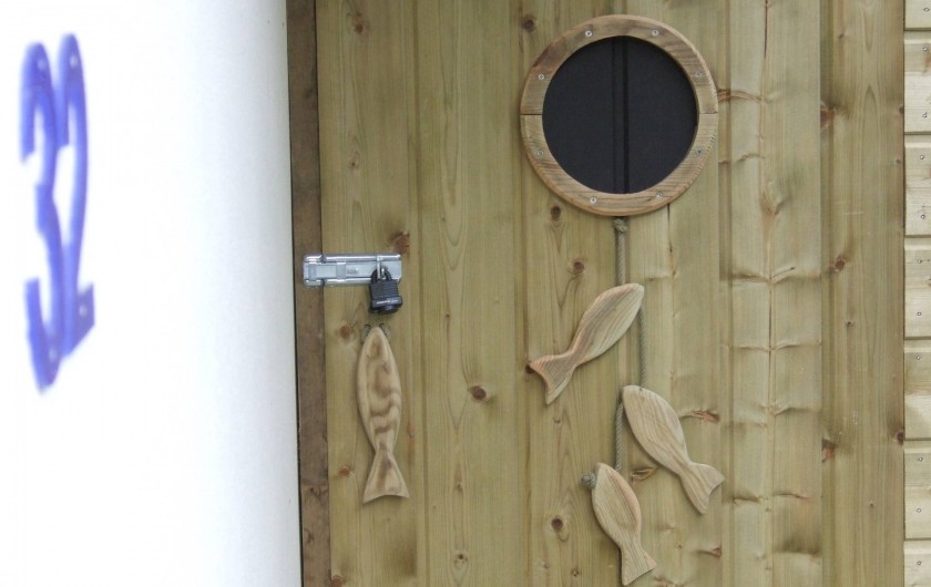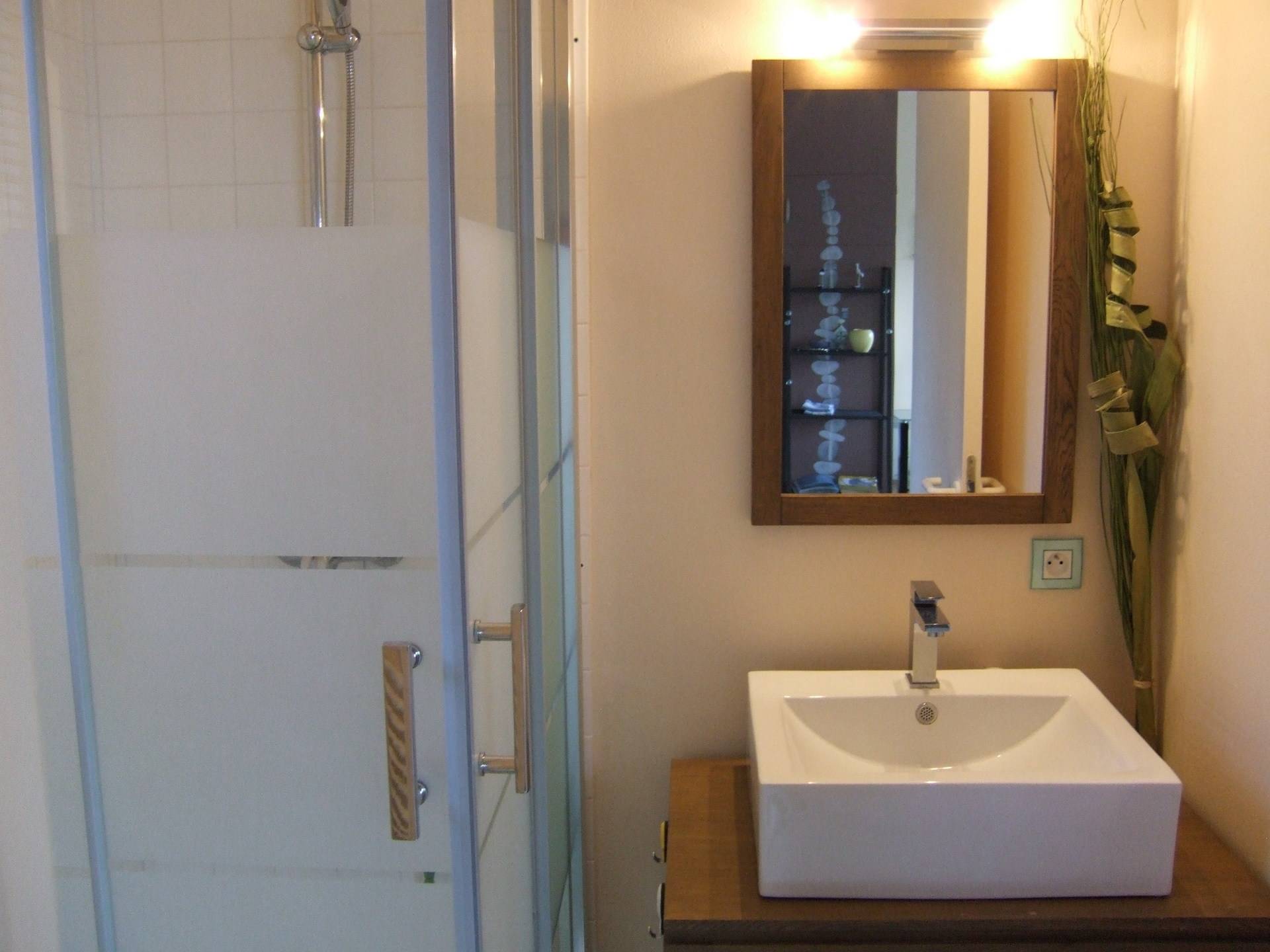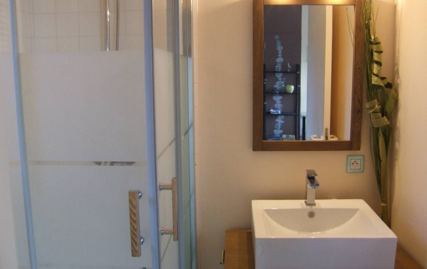 cabine de douche,et une grande terrasse abritée, orientée sud, pour prendre vos repas en famille et cela dès le petit déjeuner.(2 transats sont à votre disposition pour vous reposer et lire).