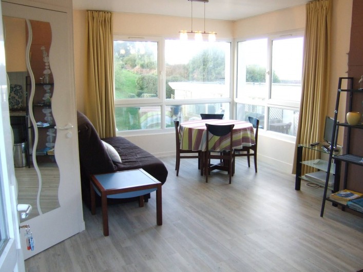 L'appartement est composé de 2 pièces de plain-pied:un grand séjour avec coin cuisine, une chambre avec un grand placard, une salle d'eau avec