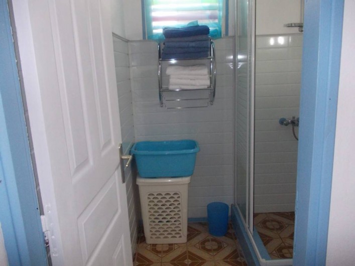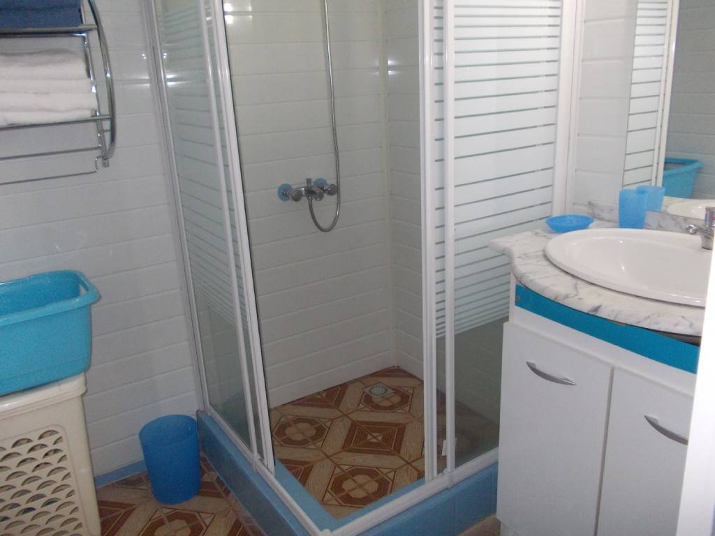 F3 ventilé disposant de 2 terrasses, de 2 chambres doubles climatisées avec placard, d'1 salle de bain avec douche, d'1 sèche-cheveux, d'1 WC indépendant, d'1 salon avec canapé d'angle convertible, table, chaises, internet en wifi, DVD, TV, 1 cuisine équipée (réfrigérateur, grille-pain, mixeur, micro-onde, gazinière, vaisselle,