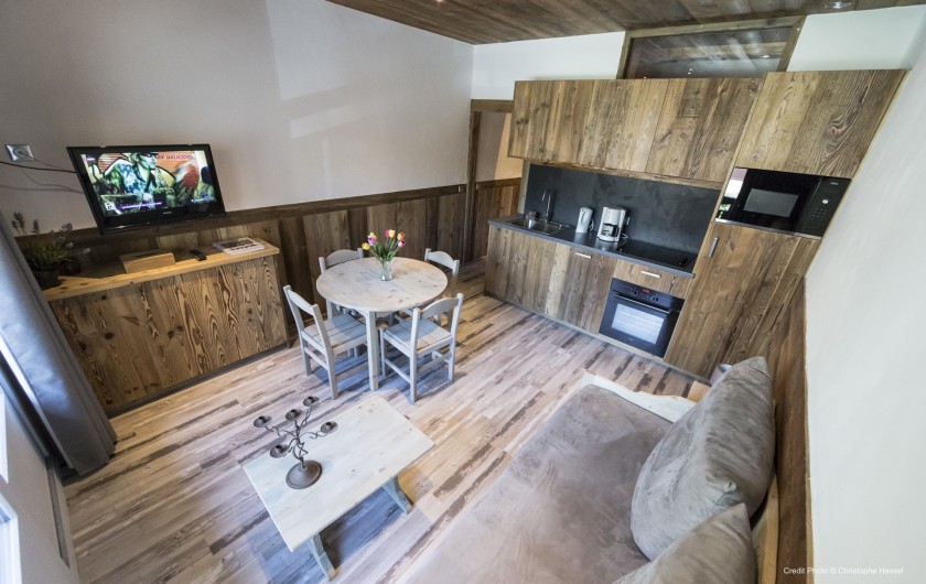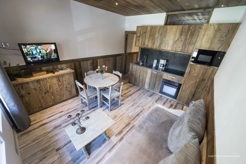 Le logement est aménagé pour recevoir 5 personnes avec au salon un canapé-lit double et dans la chambre un lit double et un lit simple en hauteur. Depuis le balcon vous pourrez profiter d'une vue montagne.