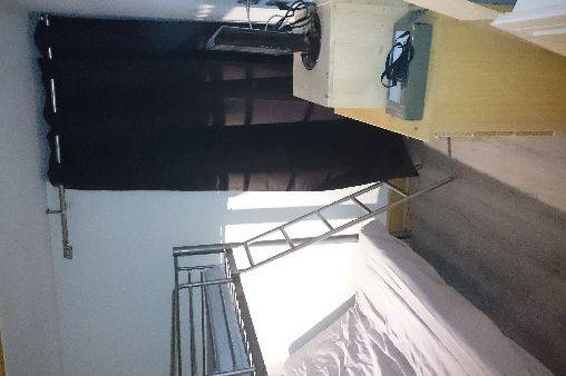chambre avec lit en hauteur et lit clic-clac 2 personnes, couettes, oreillers