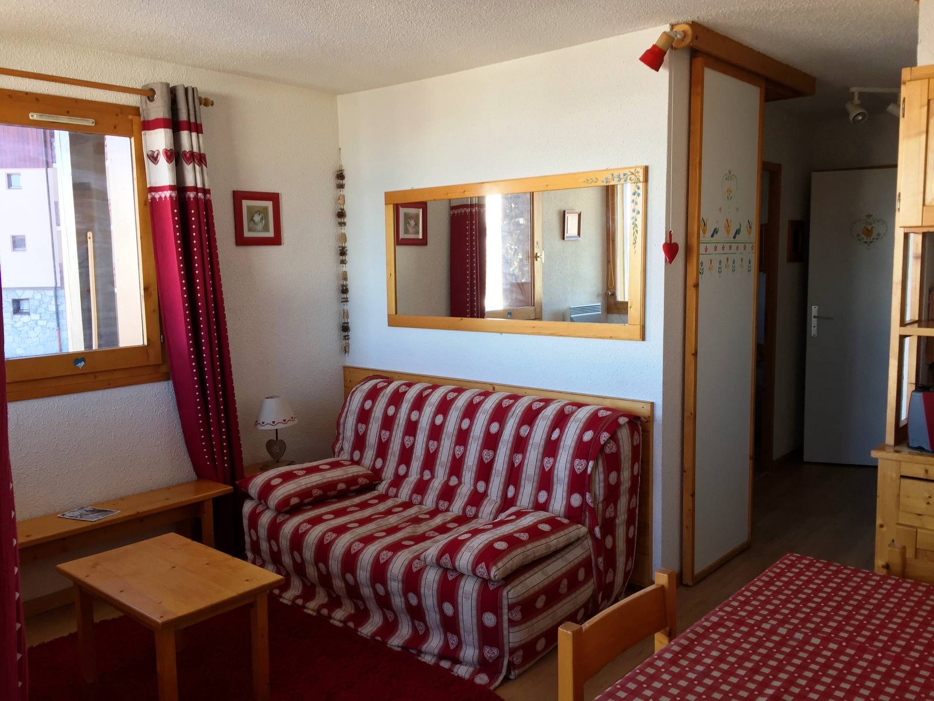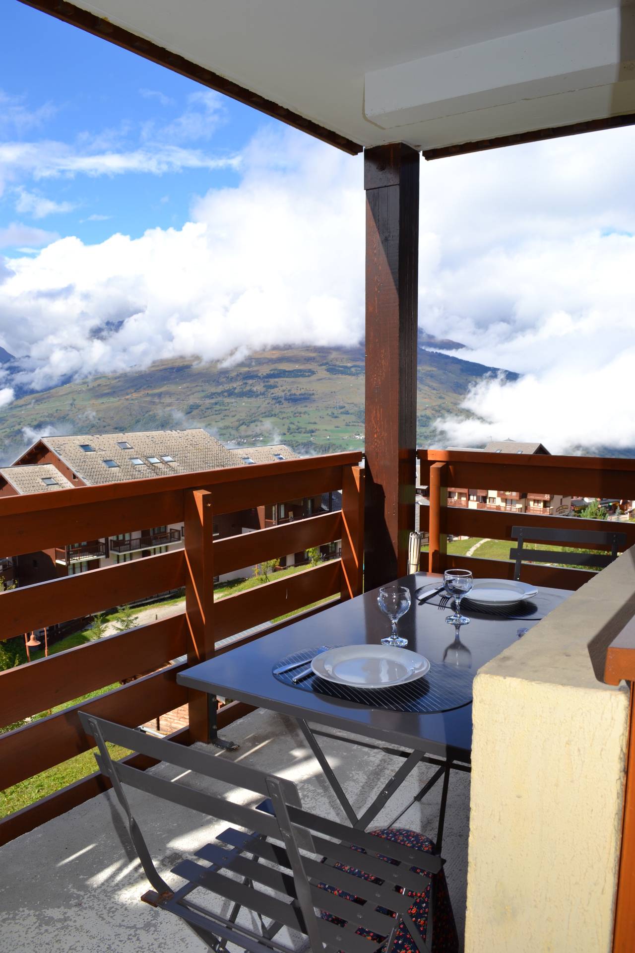L'appartement est situé dans une petite résidence côté Vallandry, la résidence de l'Aigle. Il surplombe le jardin des neiges et au-delà, le centre de Vallandry à quelques dizaines de mètres. L'accès se fait au niveau 0 côté amont de la construction (pas d'escaliers pour les bagages) et le balcon se trouve à l'aval, surplombant les niveaux (-1) et (-2). Cette situation idéale exposée sud-ouest