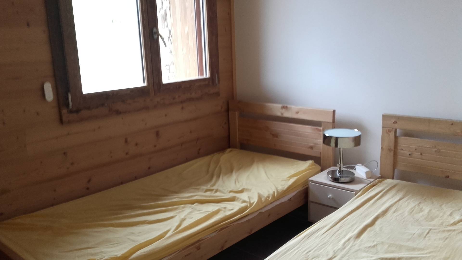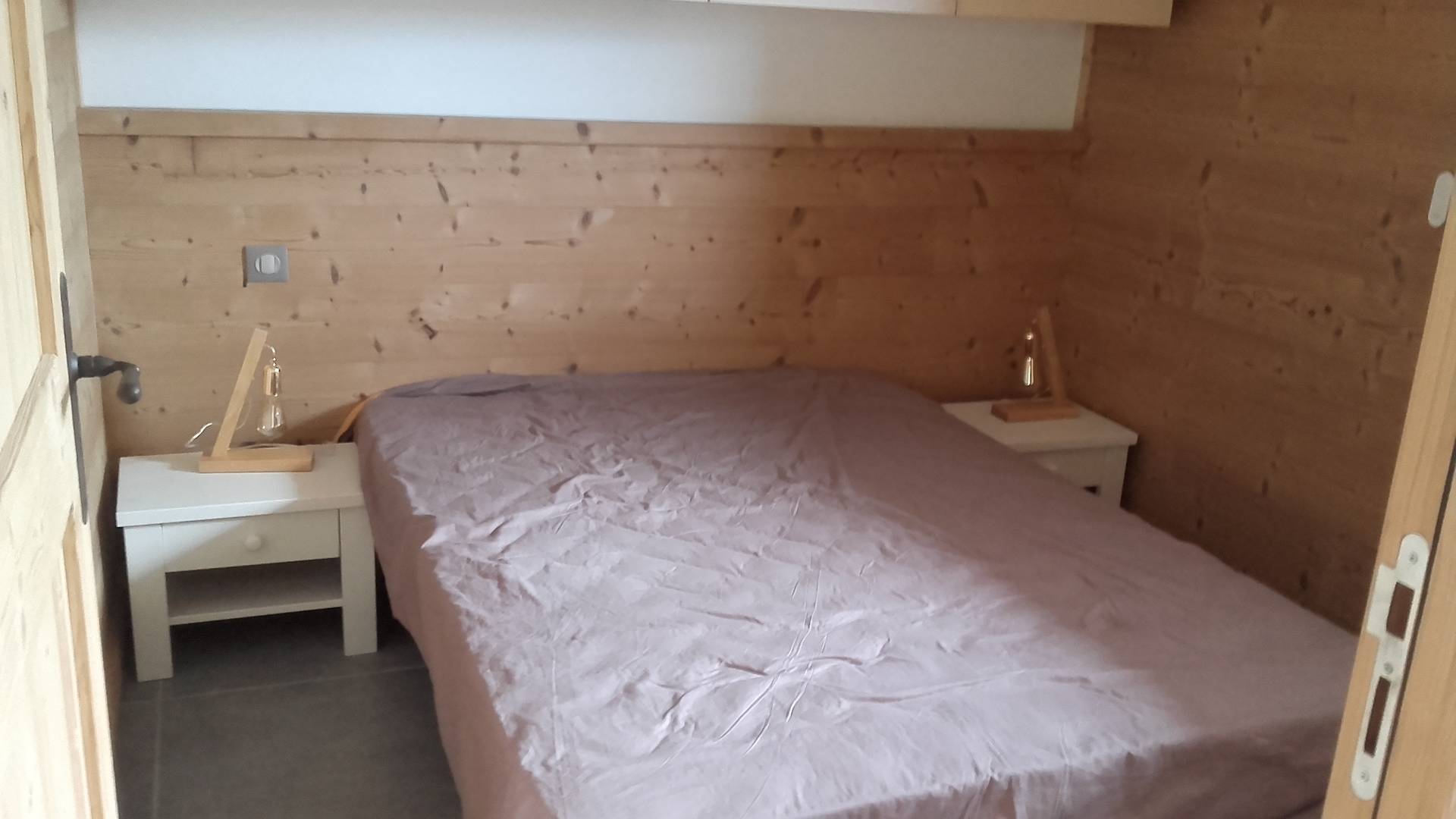 Une chambre avec un lit double , une chambre avec 2 lits simples , un coin montagne fermé avec un lit simple