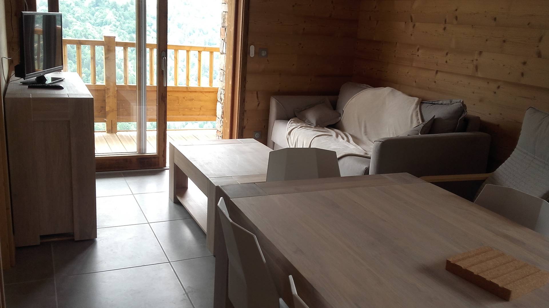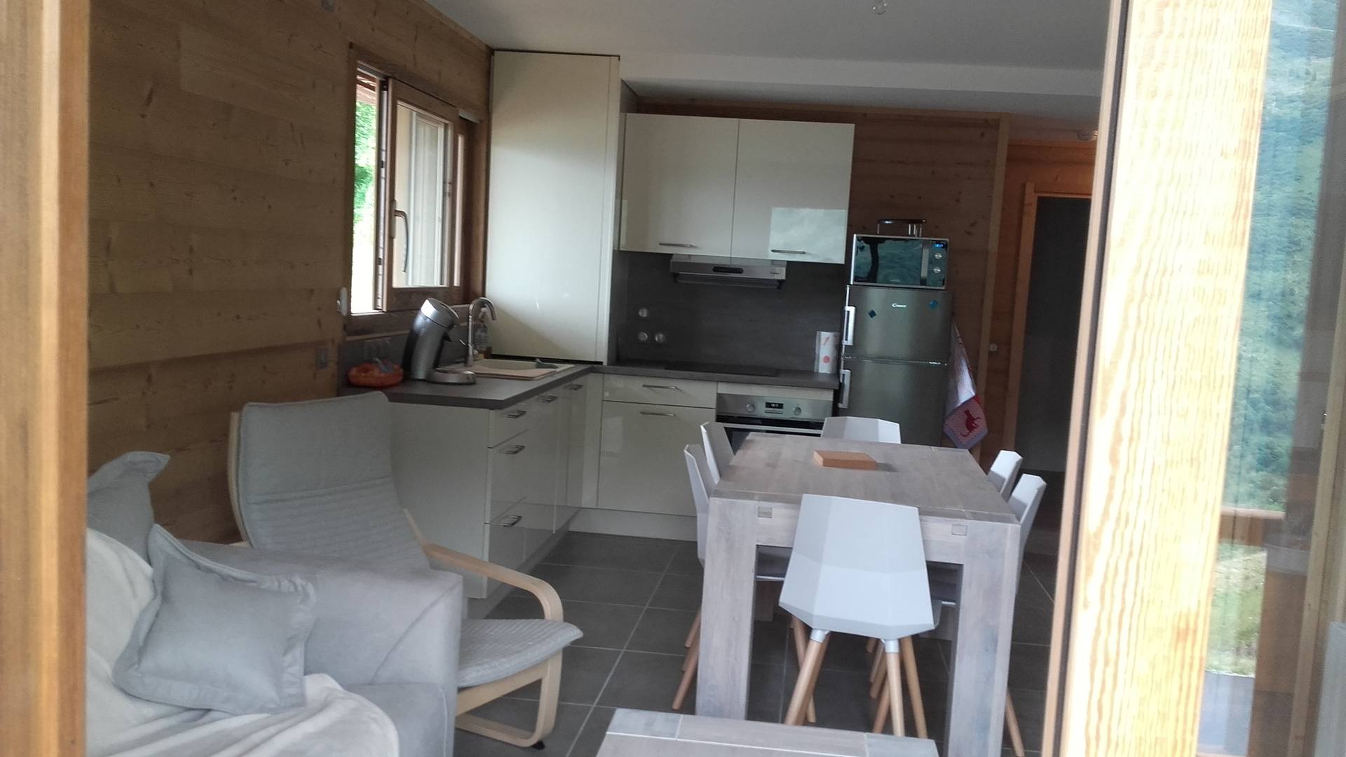 Séjour avec cuisine entièrement équipée ( frigo avec congélateur ,1 four et 1 micro-onde , plaque vitrocéramique , grille-pain , lave-vaisselles , appareils à fondu et raclette , cafetière )