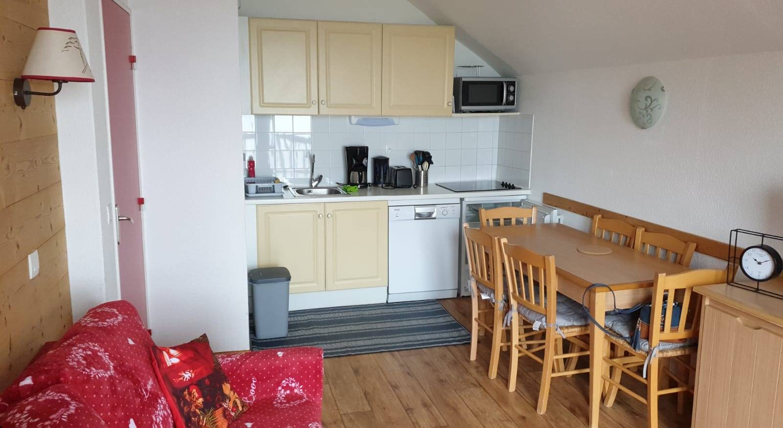 Cuisine : Machine à café, grille pain, bouilloire, Plaques de cuissons avec tous les ustensiles de cuisines, Lave-vaisselle, Micro-ondes, Réfrigérateur, aspirateur.