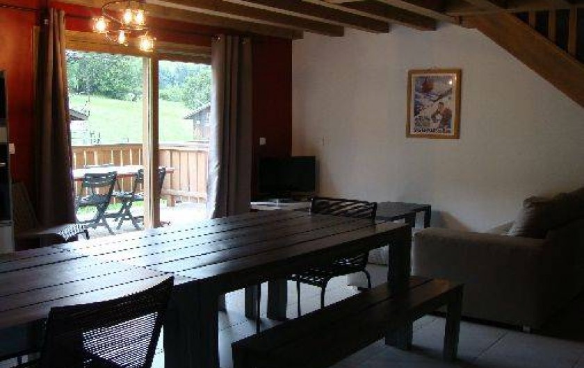 loue tres bel appartement de 120 m2,vue sur piste de ski avec acces direct juste a traverser la route,belle terasse plein sud tout confort cuisine ouverte sur sejour,3 chambres doubles mezzanine avec dortoir 6 petits lits avec salle de douche et wc ainsi que lingerie a l etage.En bas,wc independant,salle de douche italienne,grande cuisine toute equipee lave vaiselle,four a pyrolyse,micro onde,cafetiere,grille pain etc,coin salon avec tv dvd etc.Casier a ski prive.La location est situee a 2 kilometres du cœur de la station navettes gratuites pour monter ou acces a ski par la piste du rocher.