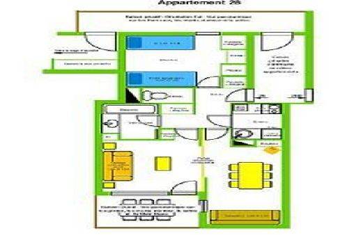 baignoire, wc indépendants nombreux rangements, casier a skis a l'étage appartement renové cet appartement est sur le même palier que l'appartement 28b (sur les pistes) et conviendraient à une grande famille ou deux Exposition Ouest.