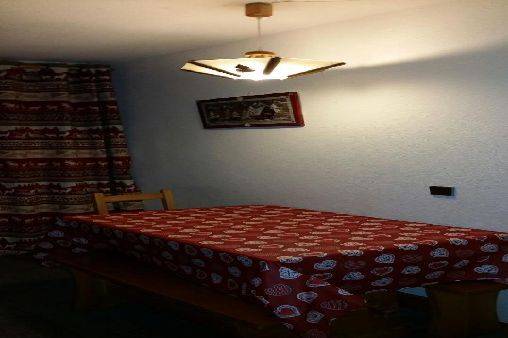 Location appartement 2 pièces pour 4 personnes aménagement montagne aux pieds des pistes de ski à Valmorel comprenant: entrée, séjour banquette clic clac pour 2 couchages avec coin cuisine entièrement équipée , 1 chambres 2 lits superposés+ 1 lit tiroir, salle de bain, balcon vue sur station et pistes exposé sud-ouest