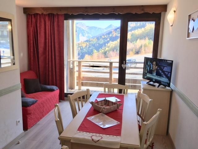 A 150 m des pistes et du centre du village , beau duplex de 45m2 avec balcon .Vue panoramique sur la vallée de la Maurienne.