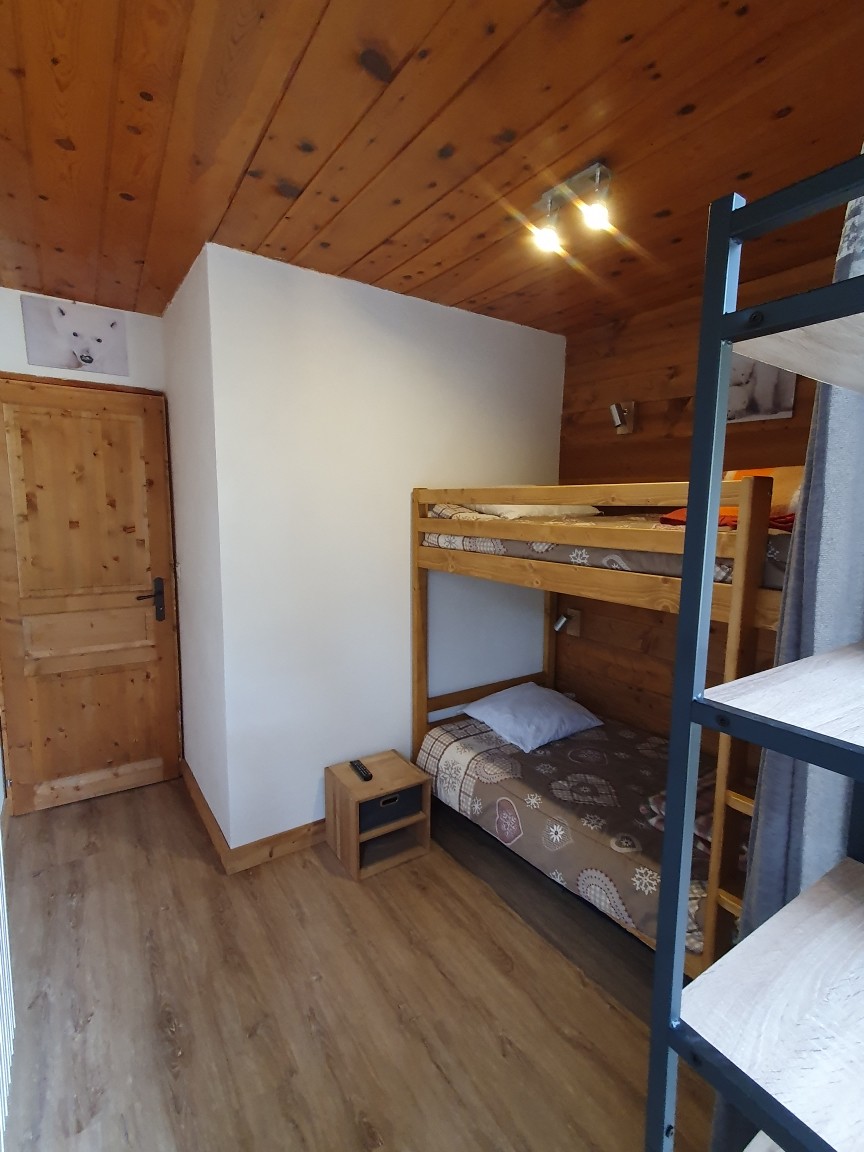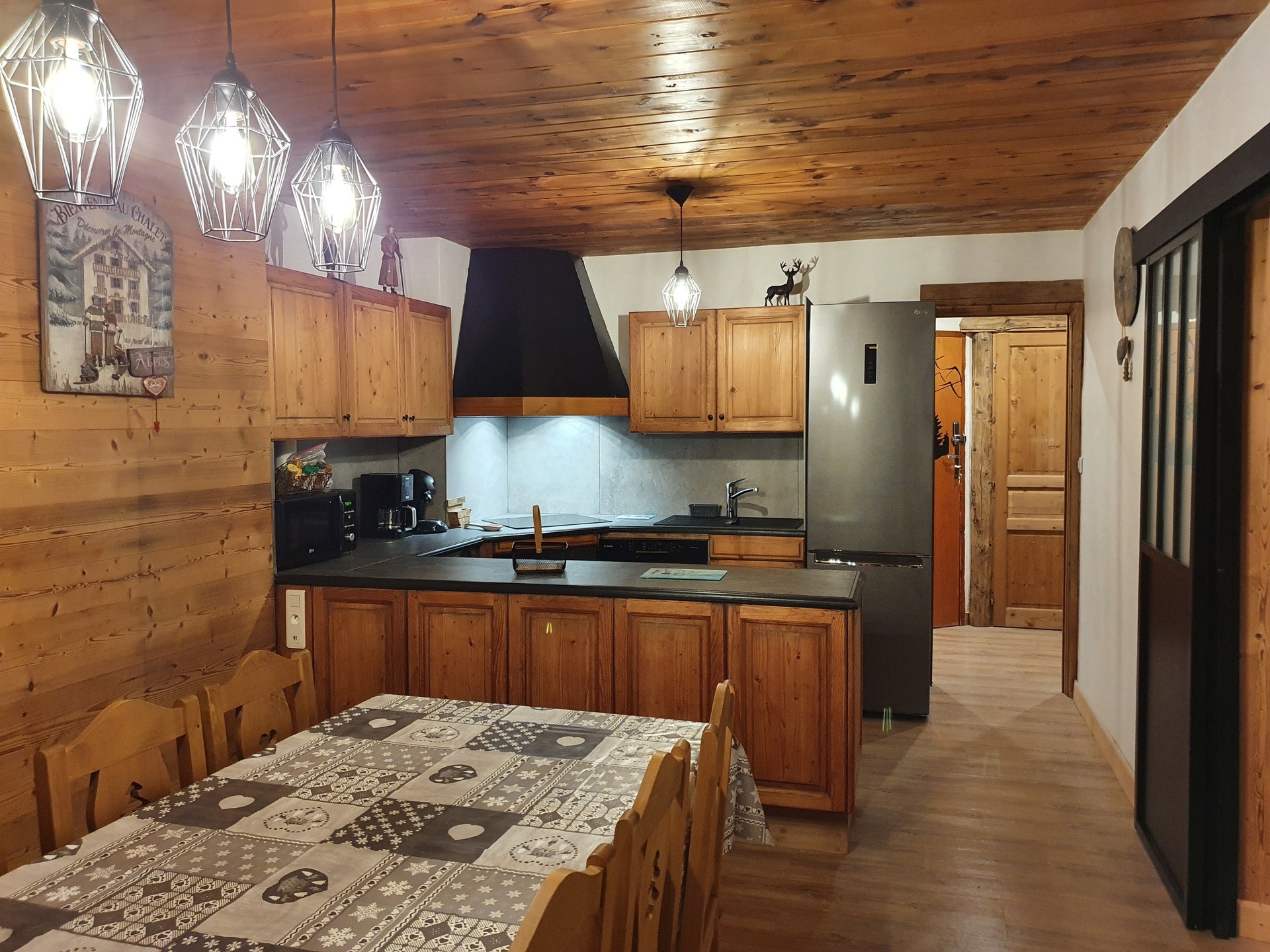 de 100m², composé de 5 pièces (séjour/cuisine américaine entièrement équipée + salon, pièce supplémentaire indépendante + 3 chambres), 2 sdb, 2 toilettes séparés. Un local à ski avec