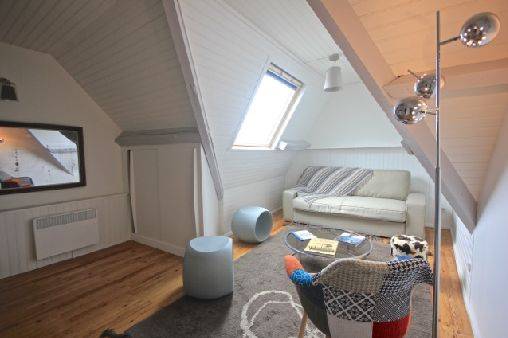 Appartement en duplex, VUE MER, 60 m2 - ET plein centre, faites vos courses à pieds en 2 minutes ! 2 chambres : 1 Lit double 140 X 200 et 2 lits simples 90 X 190 Salon : 1 canapé lit double 1 salle de jeux / cinéma 1 salle à Manger / Bar - VUE MER Plein centre du vieux VILLERS SUR MER, 10 mètres de la plage + commerces