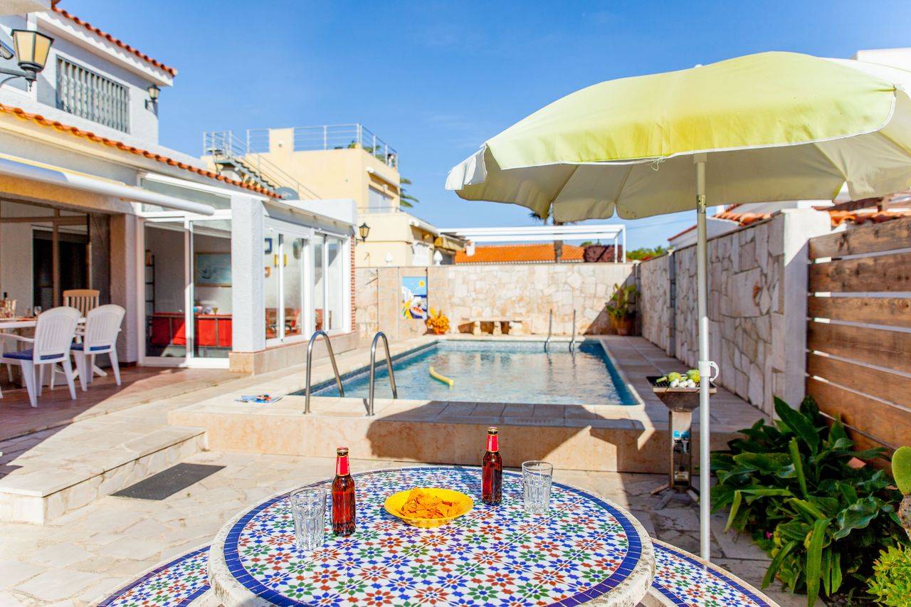 Dans le jardin communal il ya la piscine, douche extérieure, des chaises longues et une piscine pour enfants.