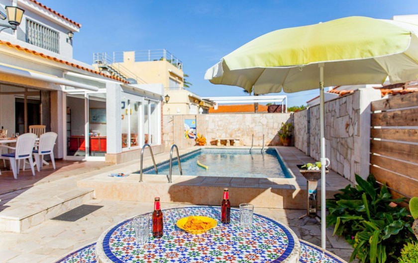 L'appartement dispose de deux chambres: une double avec un grand lit et deuxième avec deux lit individuelle, le deux avec placards et miroirs. Le salon dispose d'un canapé-lit, table et chaises, TV avec la télévision par satellite et accès à la terrasse, avec mobilier de jardin. La cuisine ouverte est entièrement équipée. Il dispose d'une salle de bains avec baignoire et