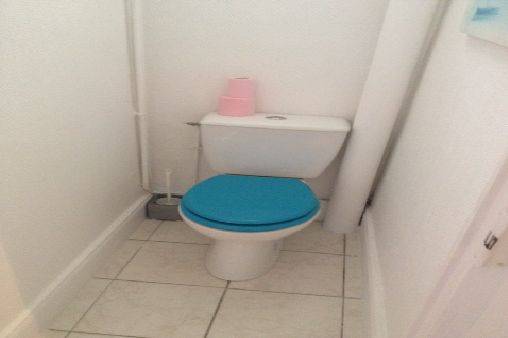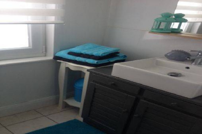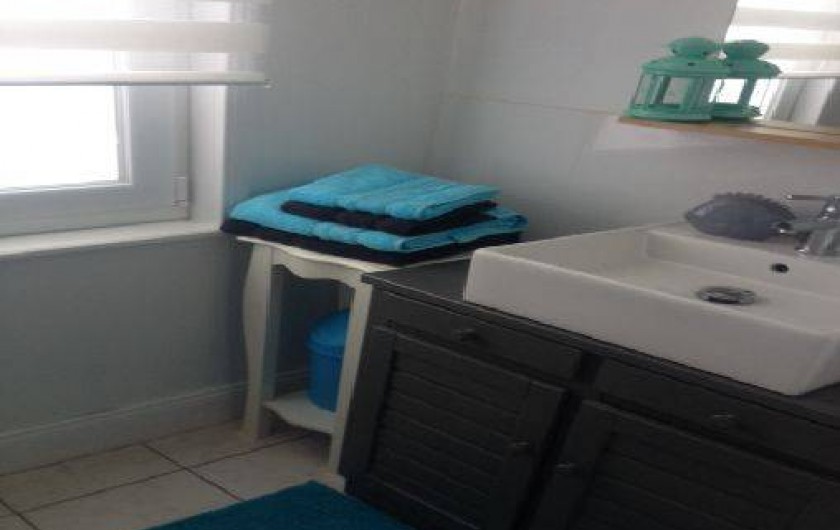 Salle d’eau avec lavabo 1 vasque, douche. Toilettes séparées.