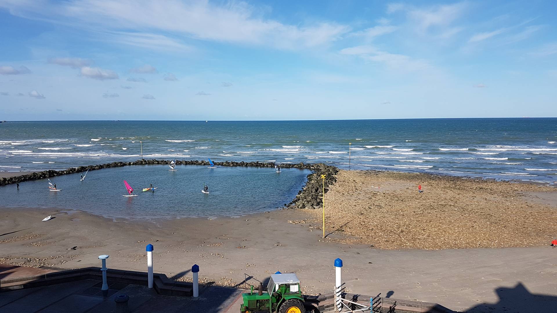 face à un petit bassin pour les enfants ou se déroulent les cours de voile débutant