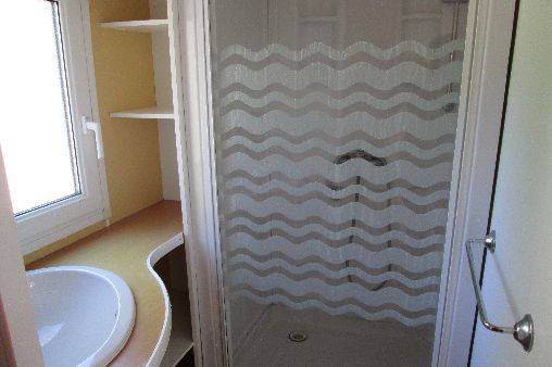 Mobile-home tout équipé : frigo congélateur, petite télé, micro-onde, cuisine équipée, 2 chambres avec 1 grand lit et 2 petits lits. Salle de bain et wc séparés. IDEAL FAMILLE.