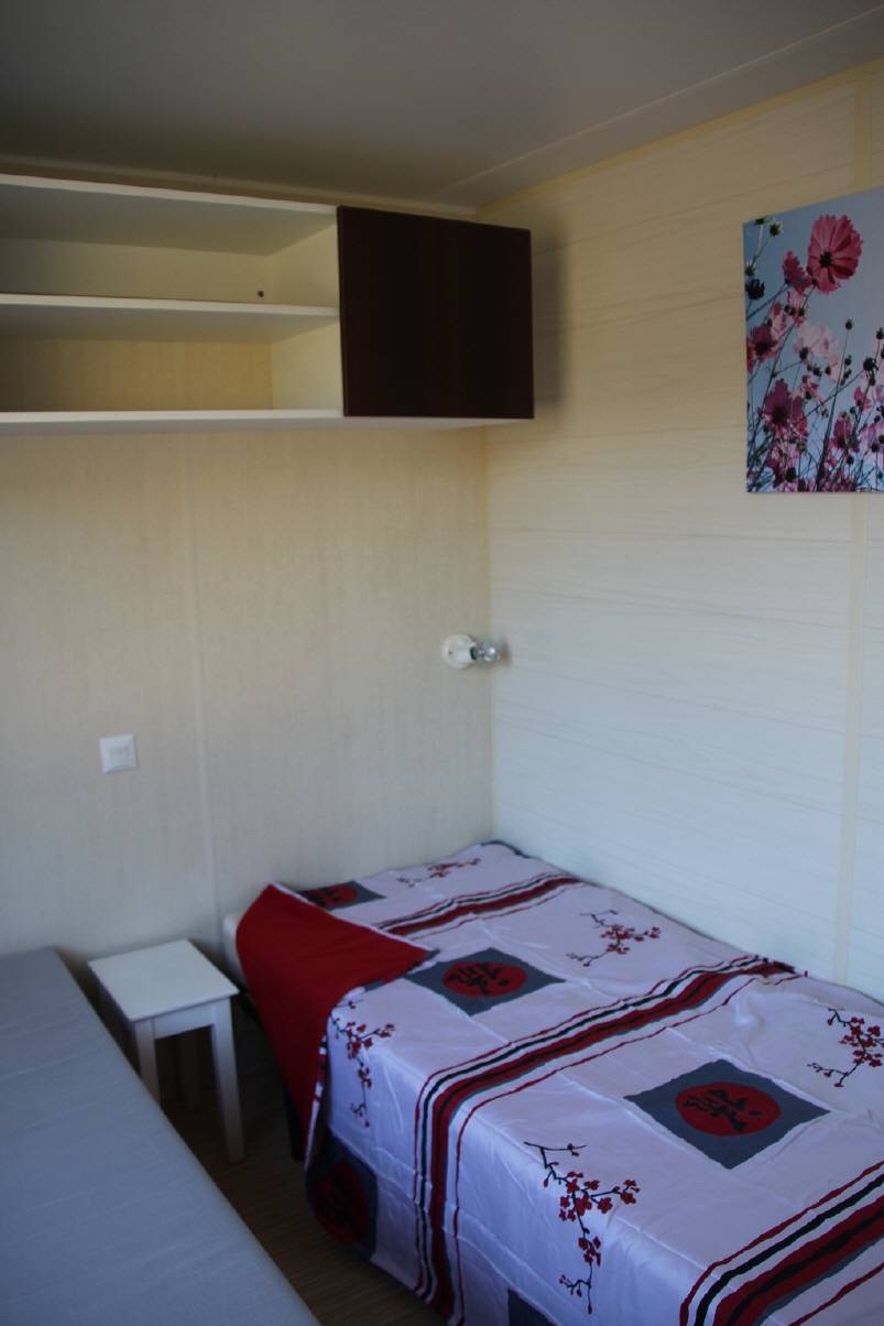 Les mobiles-home se composent d'un séjour, d'une cuisine équipée, et de deux chambres avec, dans la première un lit double et dans la seconde deux lits simples.