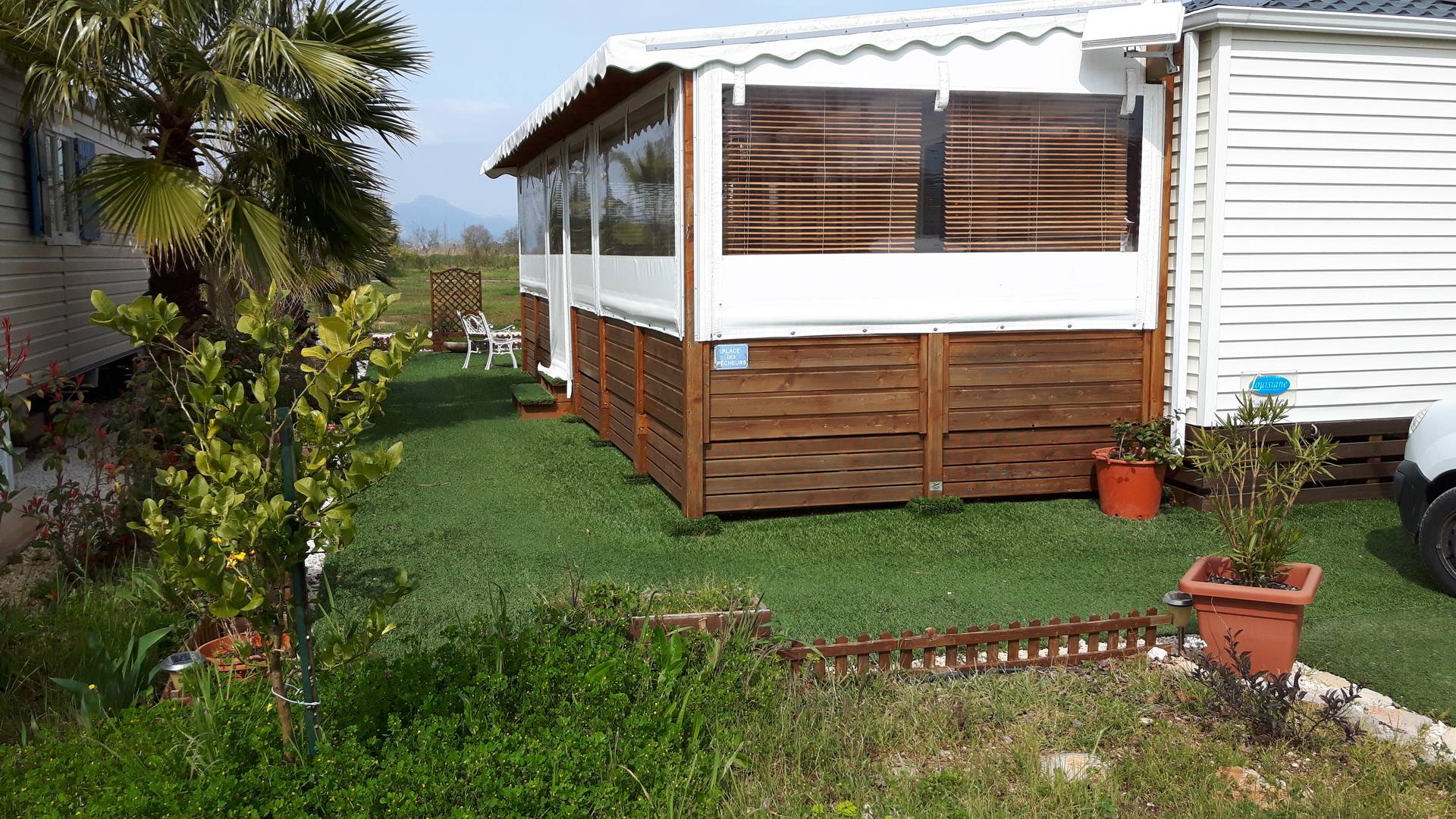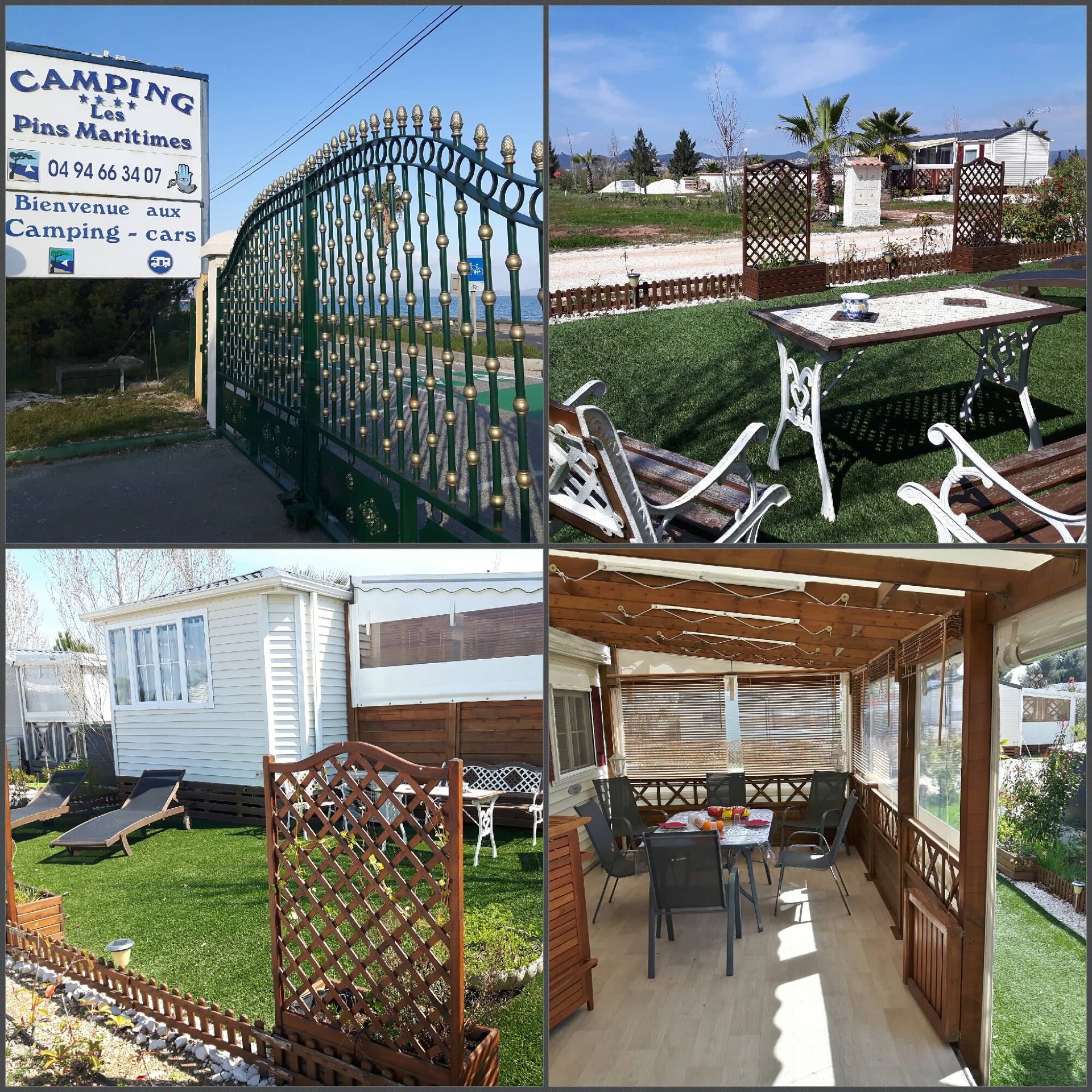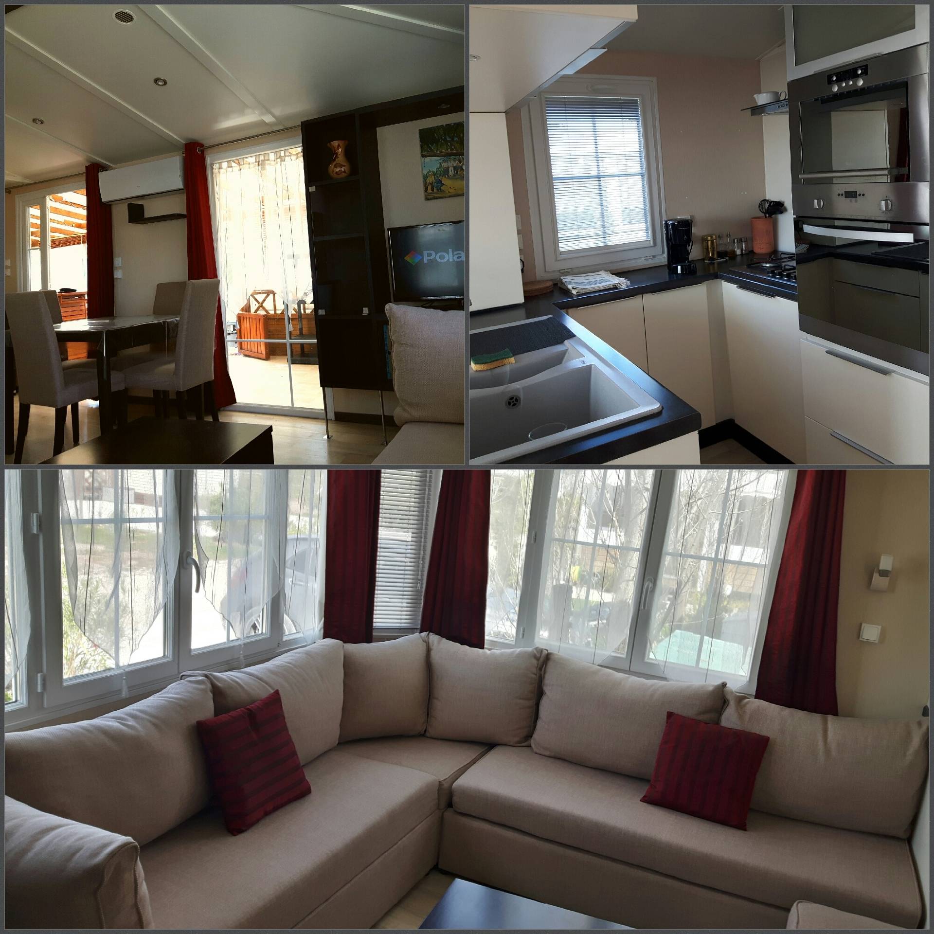 Loue dans un camping 4* LES PINS MARITIMES à Hyeres plage (var) MOBIL-HOME Louisiane Charleston 40 m2+terrasse de 27 m2 couverte au choix sur une parcelle de 220 m2 6 couchages a 200 m de la mer,séjour avec salon, cuisine équipée ( micro-onde, 4 feux gaz, hotte aspirante, four réfrigérateur congélateur cafetière électrique, grille-pain, lave-vaisselle, lave linge séchant .1chambre grand lit 160x200 avec salle de bain ,1 chambre avec 2 lits 1 personne ,1 couchage 2 places salon ,1 wc séparé .climatisation réversible ,télévision ,lecteur dvd , barbecue a gaz ,fer a repasser … ,sèche-cheveux ,aspirateur ,parking ,2 vtt à disposition,lit et chaise bb sur demande ,linge de maison fourni,animaux propre de petite taille acceptés ,convecteur dans chaque pièce ,salon de jardin,terrasse avec bain de soleil,table chaises .possibilité de mettre une tante deux personne dans le jardin Lire moins Lire la suite