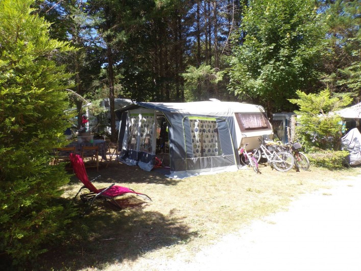Nos emplacements sont spacieux (au moins 100 m²) semi-ombragés et délimités par des haies.