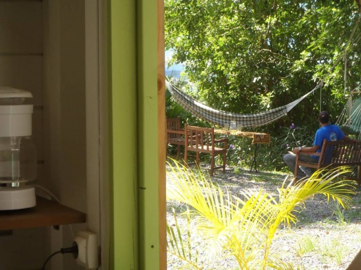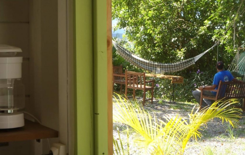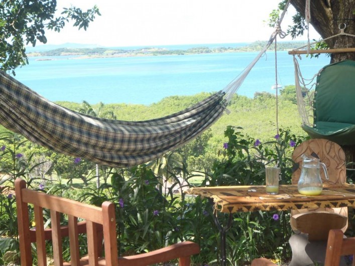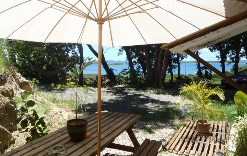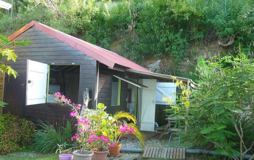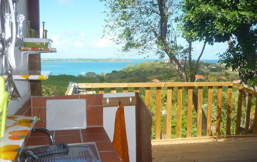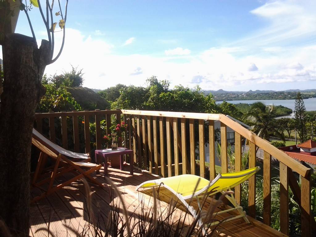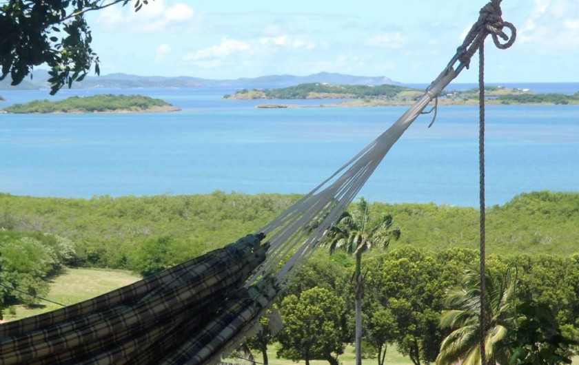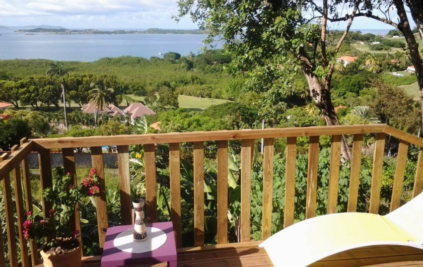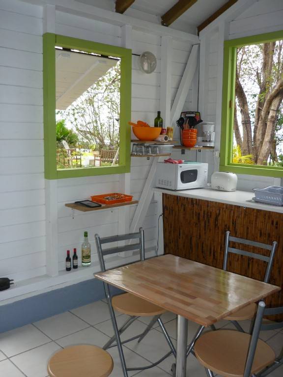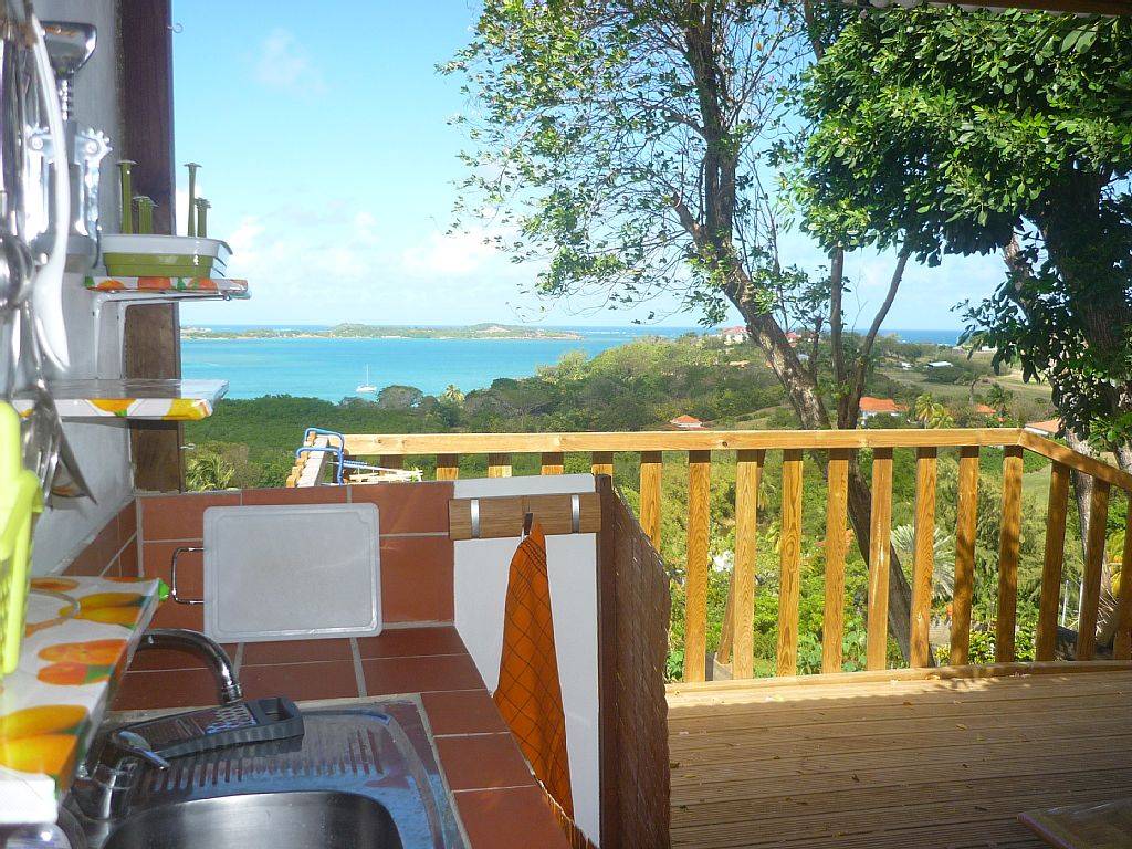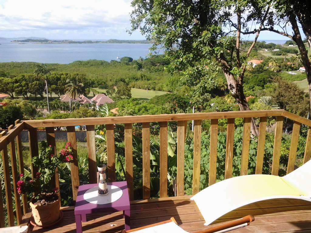 A louer ce Bungalow mitoyen situé derrière la maison familiale, au François, quartier Cap-Est, avec une magnifique vue imprenable des îlets du François jusqu'à la presqu'île de la Caravelle, un accès à la mer possible à 15mn à pied.