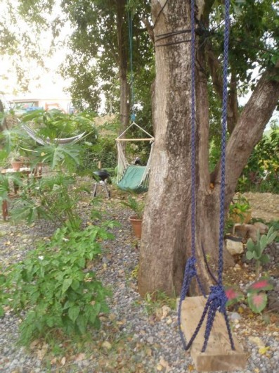 Vous pourrez vous ressourcer dans le jardin avec des arbres fruitiers autour de votre espace de vie, un hamac pour la détente en fin de journée, une balançoire pour amuser les enfants et des chaises longues pour profiter du soleil.