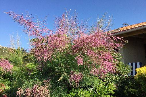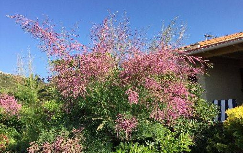 Terrasse couverte aménagée pour les repas + terrasse pour bain de soleil sur jardinet fleuri Cuisine équipée lave vaisselle et four Salle de bain avec lave linge WC séparé 2 chambres 1ère chambre 2 lits simples 2ème chambre 1 lit double + canapé-lit dans le salon