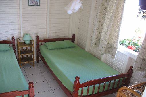 Location d'un bungalow dans la propriété, située sur les hauteurs de Saint François dans un quartier calme et à proximité du centre (5m/m) en fond un lieu de séjour fort agréable et convoité. Un accueil convivial, une décoration soignée, un équipement complet pour votre location touristique pouvant accueillir confortablement jusqu'à 4 personnes.