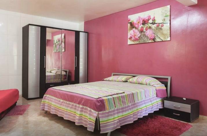 Situé au centre d’un magnifique jardin fleuri multicolores, votre studio vous ravira par ses Équipements, climatisé avec Tv très grand écran Câble, Wifi, frigo.