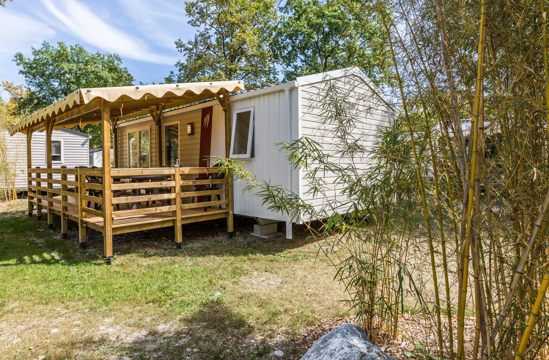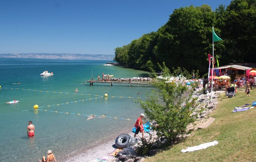 Bienvenue au camping de Saint-Disdille. Nous vous accueillons dans un vaste parc arboré, à 200 m d'une plage surveillée et gratuite, avec un accès direct à la réserve naturelle du Delta de la Dranse. Notre position exceptionnelle, entre plage et alpage, à proximité des villes thermales de Thonon et Evian-les-Bains en face de la Suisse, vous permettra de découvrir un patrimoine culturel et naturel riche. Tous nos mobilhomes (2 ou 3 chambres, avec 1 ou 2 salles de bains) sont récents, très bien équipés et possèdent tous une grande terrasse en bois couverte, pour profiter au mieux … du calme et de la convivialité de notre camping. Récompensés par nos vacanciers et par de nombreux professionnels (camping qualité, guide du routard, tripadvisor...), nous sommes sûrs que vos vacances à Saint-Disdille seront réussies. Alors n'hésitez-plus, on vous attend sur les bords du Lac Léman. Lire moins Lire la suite