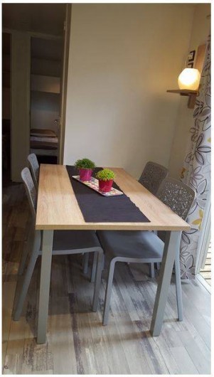 Le mobil-home comprend 2 chambres équipées chacune d’un lit 140×200 avec couette et oreillers et 2 chambres avec des lits une personne. Dans la première vous avez un lit gigogne et dans la seconde deux lits simples avec couettes et les oreillers également plus un canapé convertible 2 places dans le séjour.