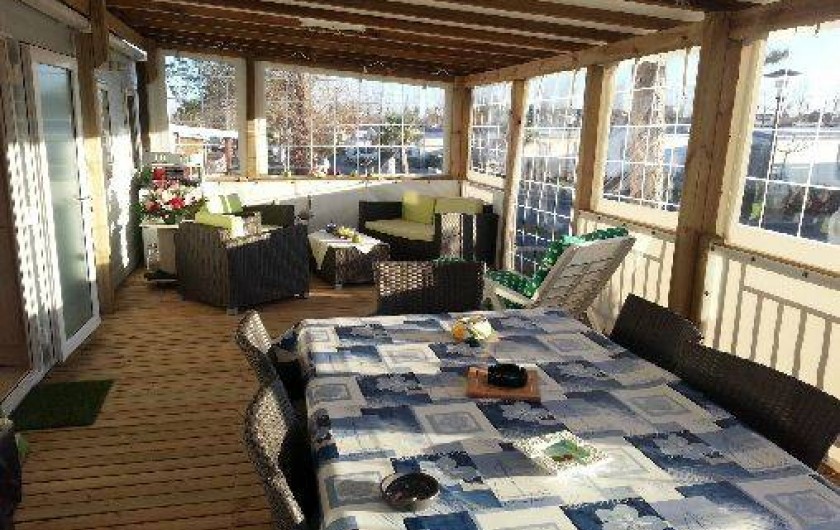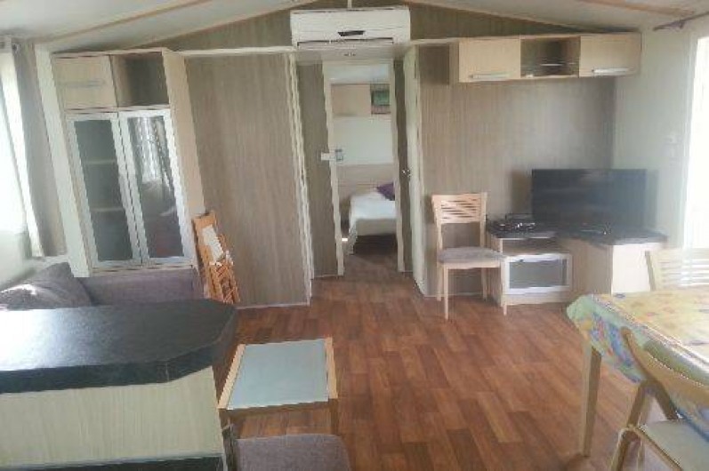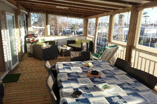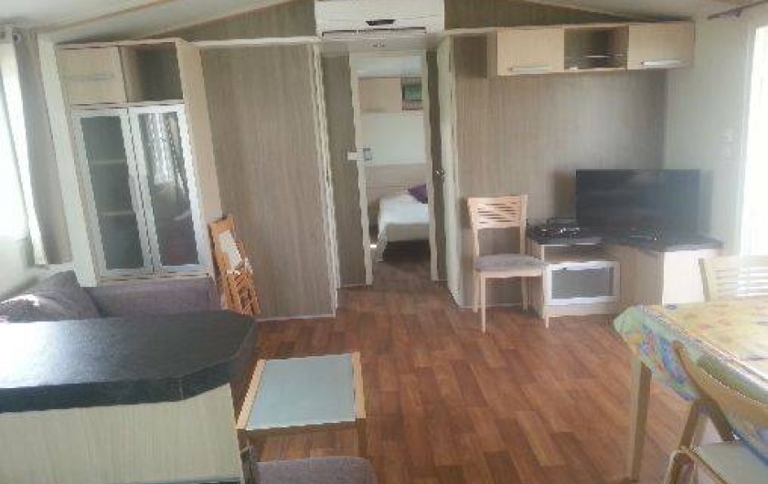 MOBILHOME de PRESTIGE 43 m² CLIMATISE ,SPACIEUX , TOUT CONFORT AVEC GRANDE TERRASSE de #30 m² , COUVERTE , SUR EMPLACEMENT SANS VIS-A-VIS