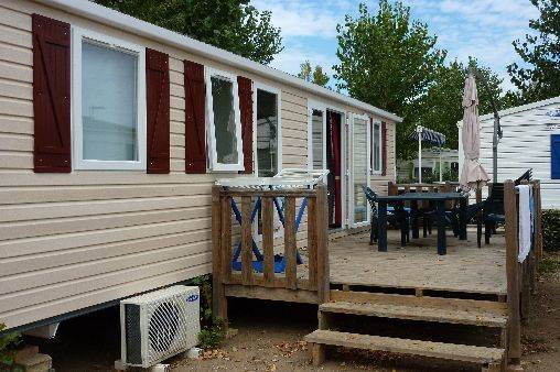 Vias (34450). Mobil-home 8 personnes, climatisation réversible et terrasse dans camping 4 étoiles « La Carabasse ». 1 chambre (lit 2 places) et 2 chambres (2 lits 1 place). 10 mn à pieds de la plage. Proche commodités. Tout équipée, cuisine aménagée, salon de jardin 8 personnes, barbecue, 2 bains de soleil. Libre du 15 mars au 15 octobre. Caution de 100 à 400 euros. Fun pass (accès piscine et club enfants) non inclus.