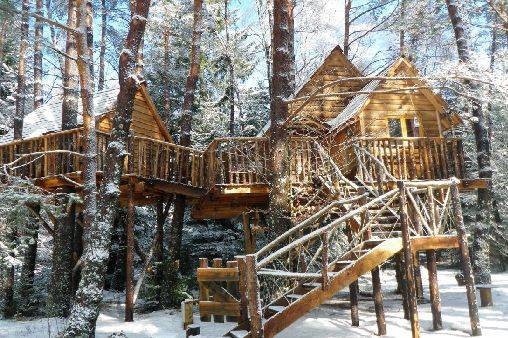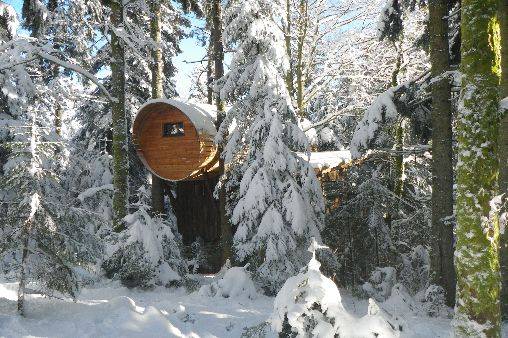 VOIR www.nidsdesvosges.com 8 cabanes cosy dans les arbres, hébergements insolites de grand confort (isolation naturelle, chauffage, cuisine, salle de bain, toilettes, 1 ou 2 chambres...) à 9 km. de Gérardmer, aux portes du Parc Régional des Ballons des Vosges. Un site intensément Nature, un concept original et confortable, de vrais chalets perchés ouverts toute l'année. Vivez la quiétude de la belle forêt vosgienne, activités Nature, secteur touristique des Hautes Vosges...